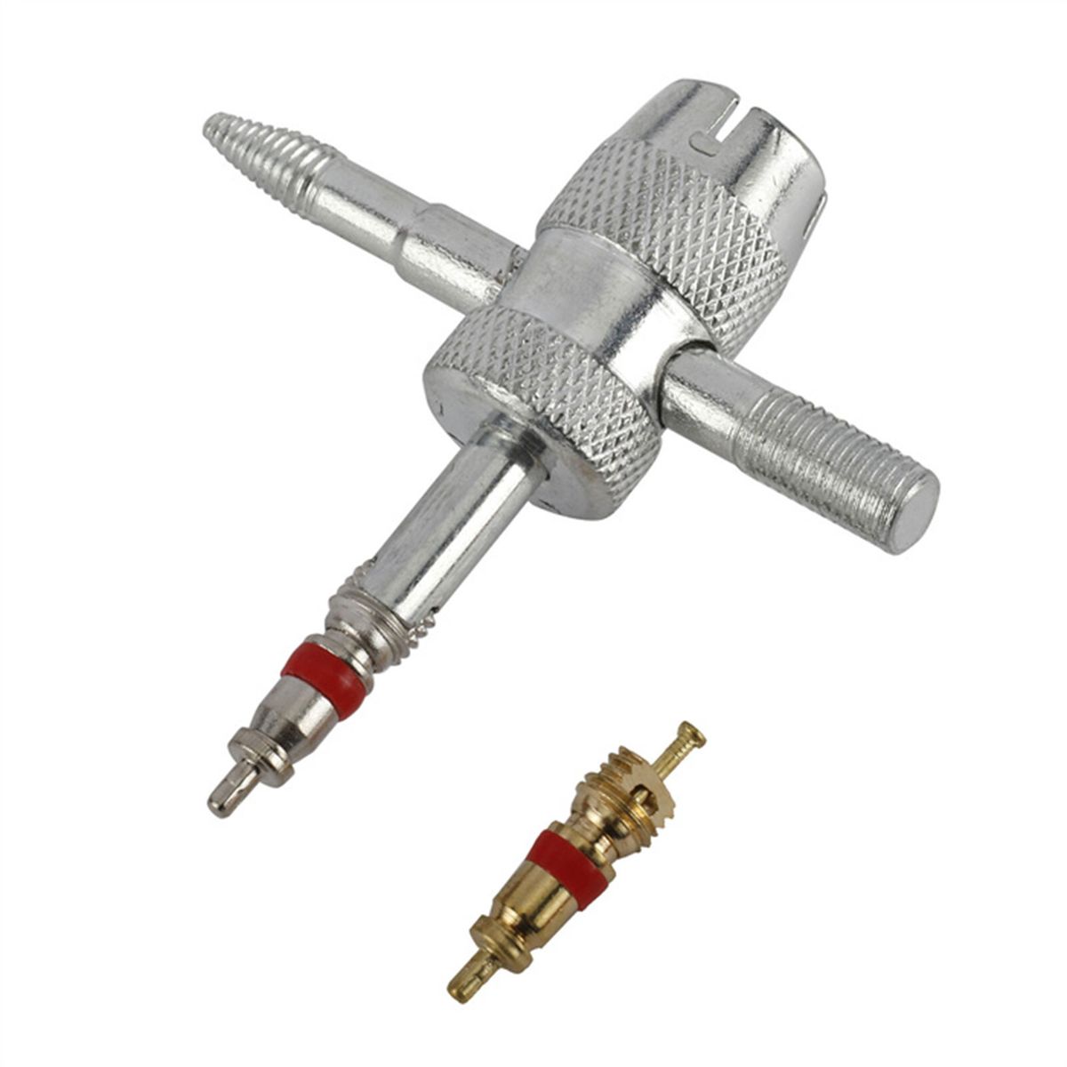 Single-head and double-head tire valve core remover for quick removal or installation of tire valves.