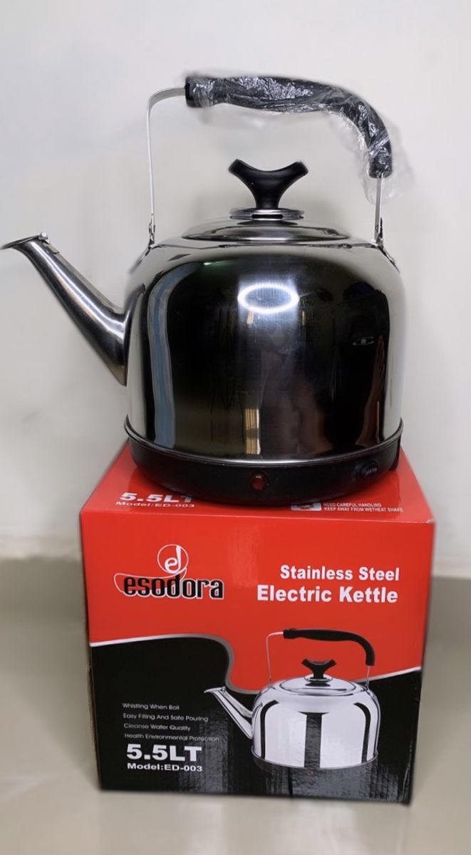 Esodora Stainless Steel Electric Kettle with 5.5 litres capacity is stylish yet simple. It is produced to whistle after boiling is completed. Perfect for every kitchen with its stainless steel body, you can be sure to have access to boiled water every time. Grab this deal and more at unbeatable discounts with doorstep delivery nationwide.