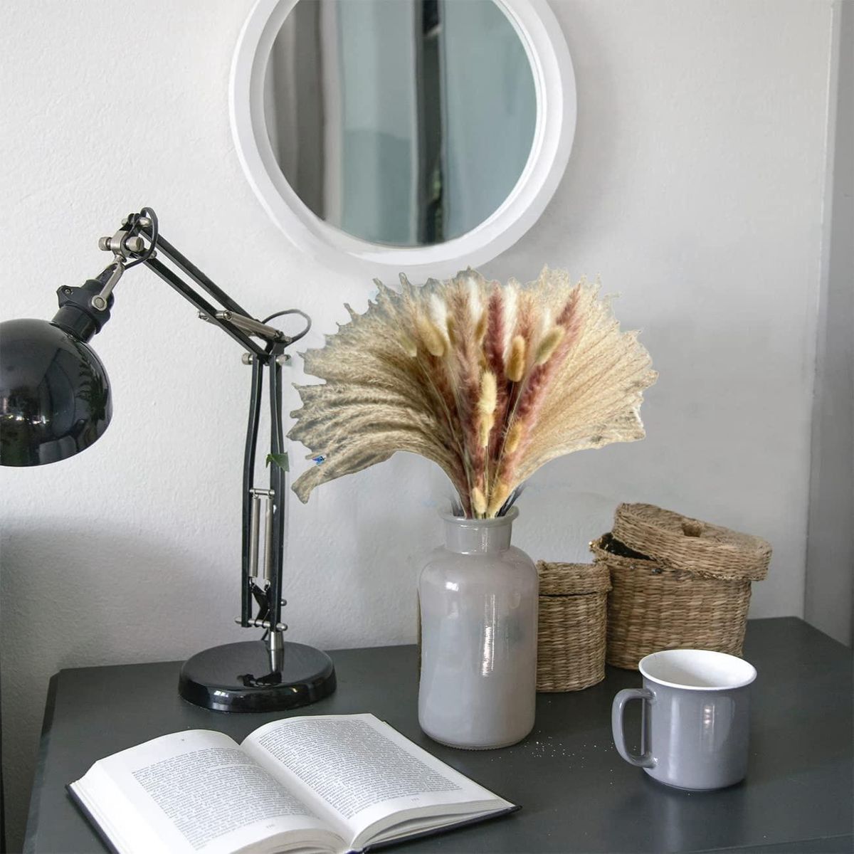 Fits all kinds of vases: suitable for many styles of vases. 55 pieces can meet the needs of various caliber vases and more flower arrangements. Naturally dried pampas grass requires no daily care and pruning and is suitable for all seasons. Here you can feel the charm of nature.