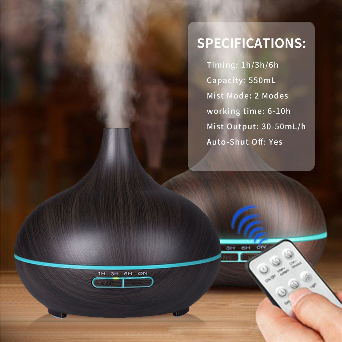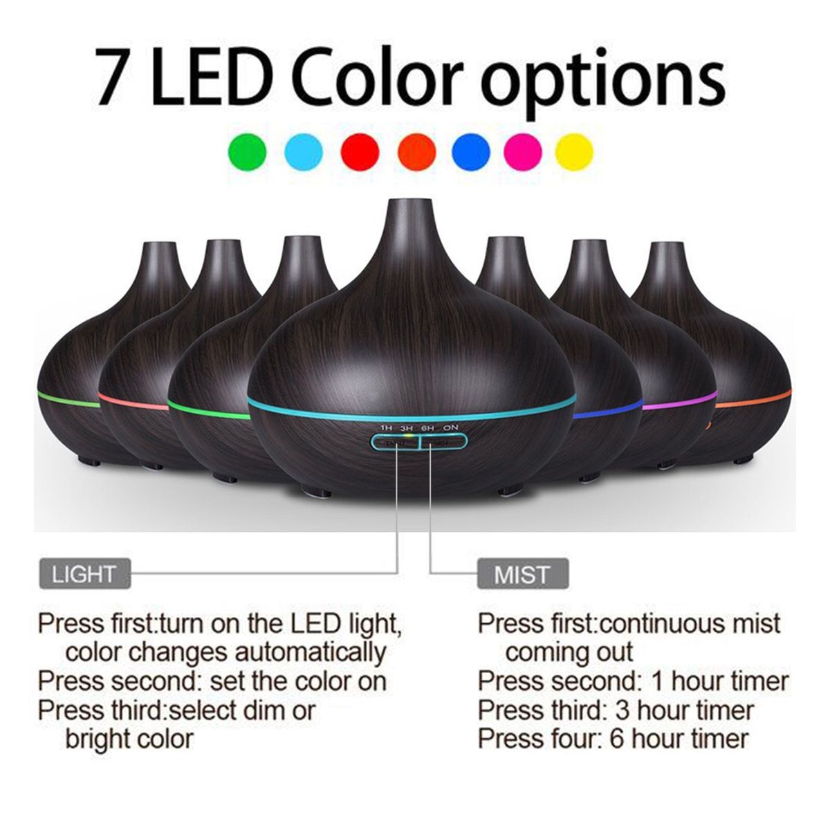 [Timer]You can set light mode and spray mode by the buttons on the mist humidifier, time setting: 1h, 3h, 6h, always on.
