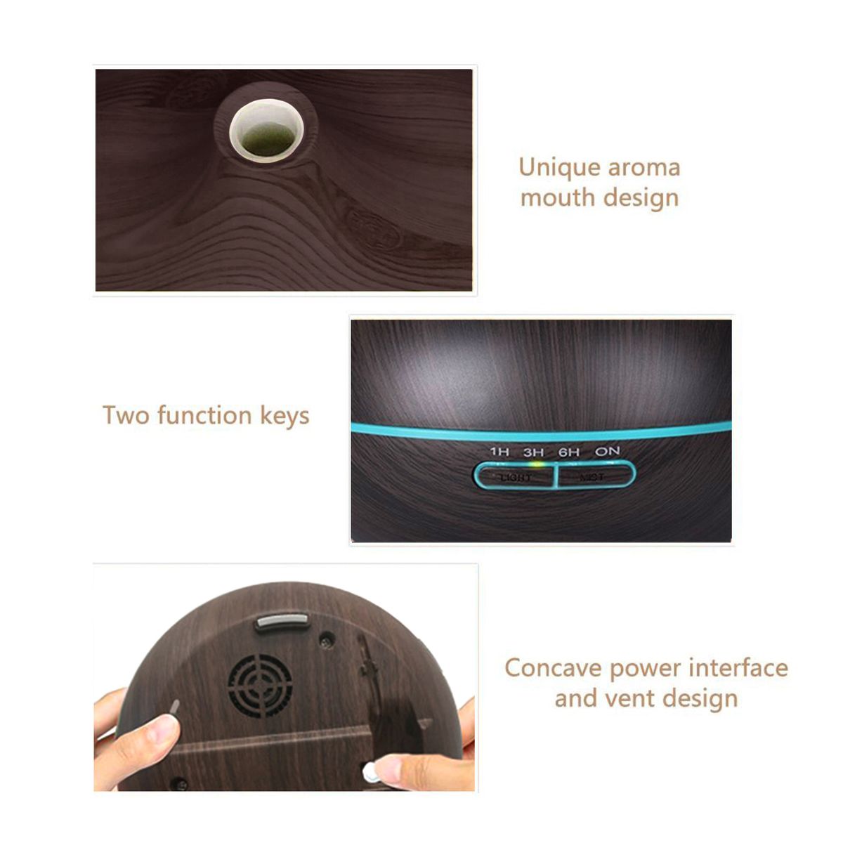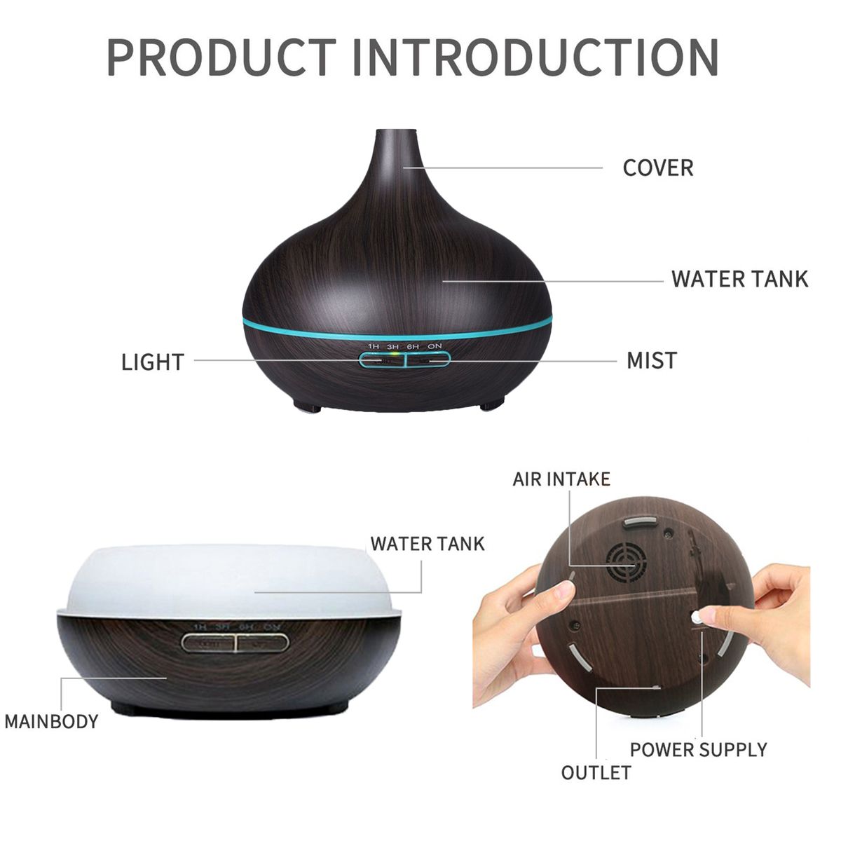 - [Timer]You can set light mode and spray mode by the buttons on the mist humidifier, time setting: 1h, 3h, 6h, always on.
