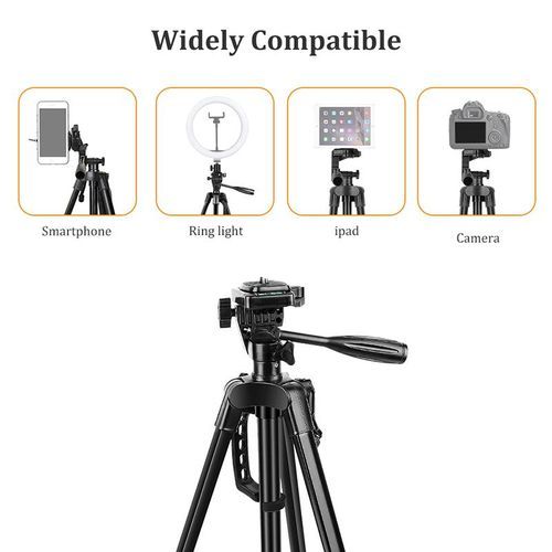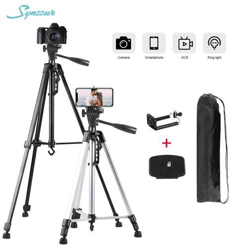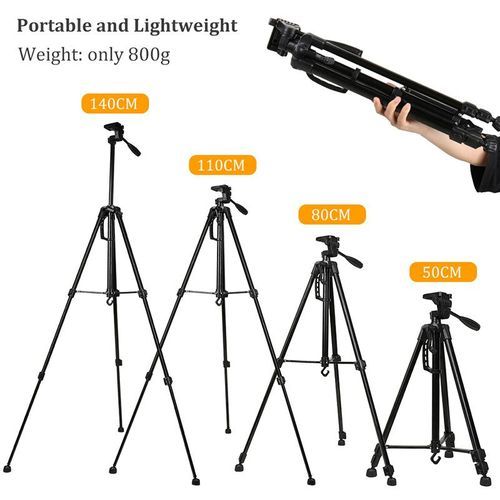 55inch/140cm Portable Tripod Stand For Smartphone Ring Light Dslr Photography Tripod Camera Holder With Phone Clip Tripodes Feature: -Can rotate 360 degrees, easily adjust the perfect camera angle. -Quick release board, easy to connect to camera or . -The height of three sections can be adjusted, and the height of the upper node can be adjusted by hand. -With hook, easy to carry items. -Aluminum feet with rubber slip resistant. -Portable carrying bag is easy to carry and store. -The best choice for SLR camera outdoor photography. Specification: Model: 3316 Product Name: Camera Tripod Max Height: 140cm Min Height: 50cm Section: 3 sections Material: Aluminun alloy Phone Holder Adjustable Width: 52-85mm Thickness: Max.18mm Maximum Tripod Load:3.0kg / 6.6Lbs Screw Size: 1/4'' Color: Black/Silver/pink/blue/red/gold 1/4'' head can be used for ring light. Package includes: 1* 140cm Tripod(Silver Black) 1* Carrying Bag 1* Clip for Phone Factory price and best quality,Support distribution and dropshipping.