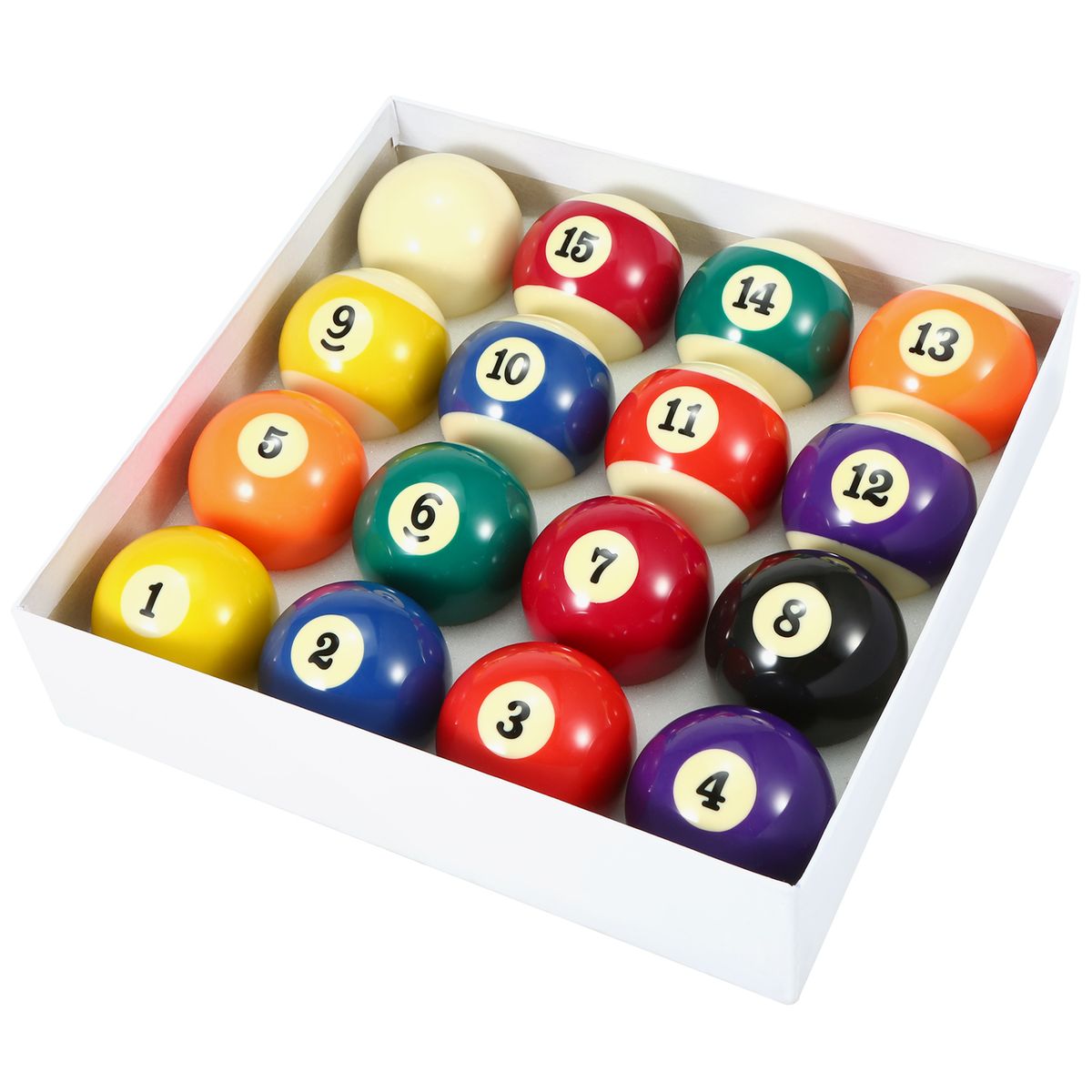 Complete Set of 16 billiard balls, standard size 2.25 quot; in diameter and regulation weight 6.3 oz.