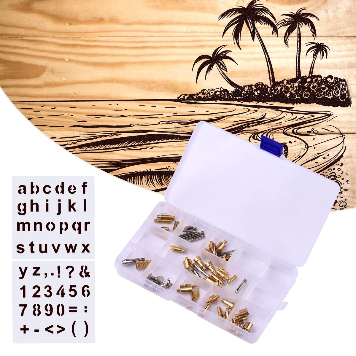 Buy 57pcs Wood Burning Pen Tips Set Woodburning Tool Accessories with Stencils Transparent Box for Pyrography Pen Wood Embossing Carving DIY Crafts in Nigeria