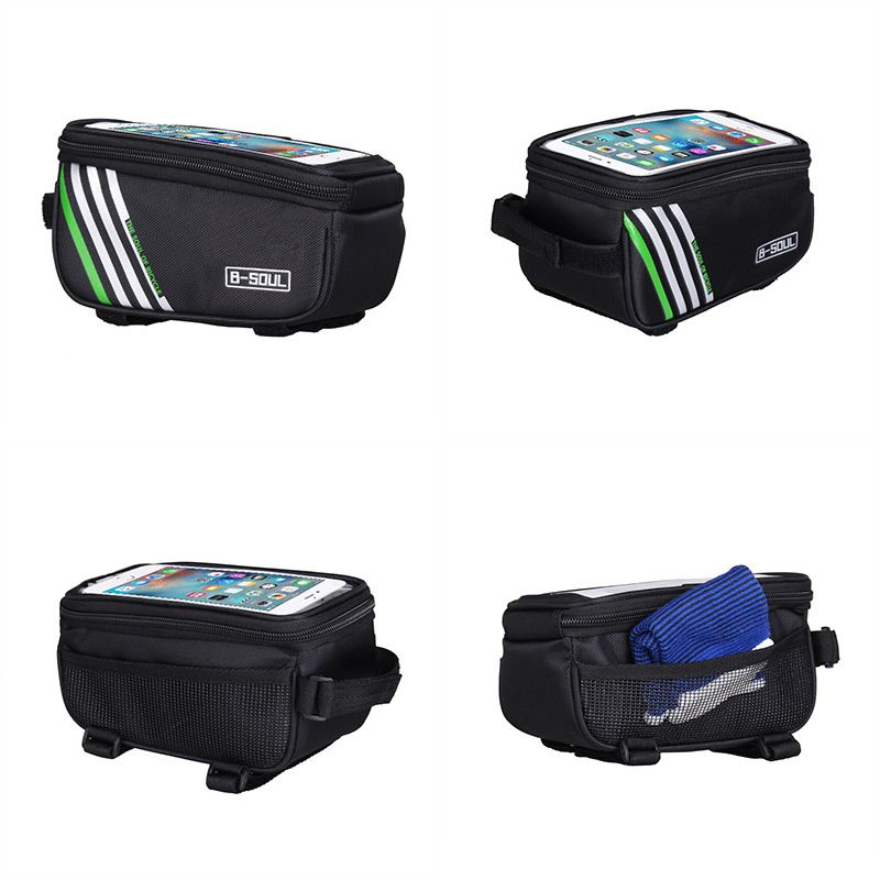 5.7" Waterproof Bicycle Front Touch Screen Bags Bicycle Frame Cellphone Bag Cycling MTB Road Bike Storage Bag Bycicle Accessories Brand: B-SOUL Color: Black,Red,Blue,Orange Size: 18*9.5*8.5cm(7.09*3.74*3.35inches) Weight: 130g Material: Polyster Use For: Cycling Sports