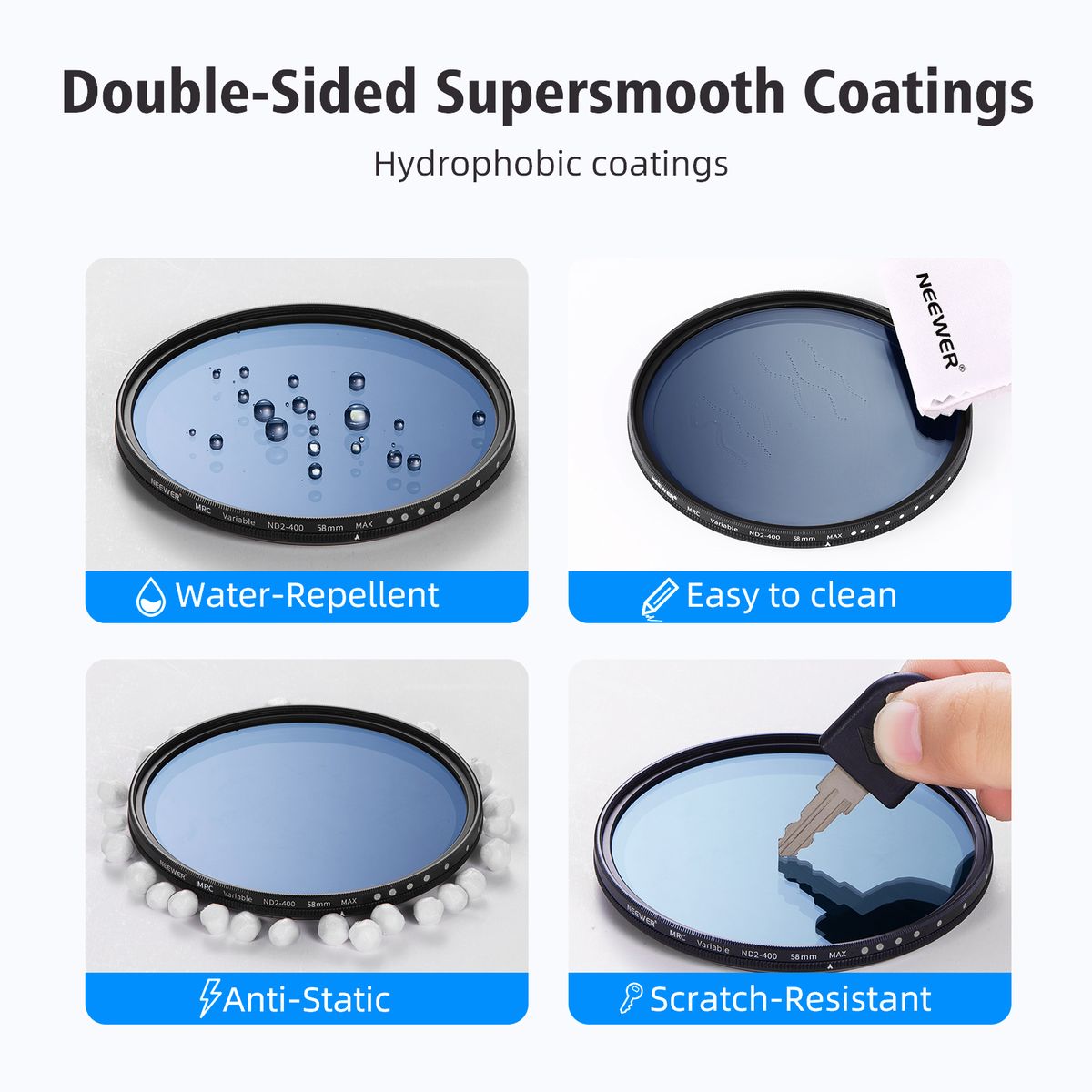 Designed with durability, the nano-coatings on the filter glass are water-repellent, smudge-resistant, scratch-resistant, and dust-resistant.