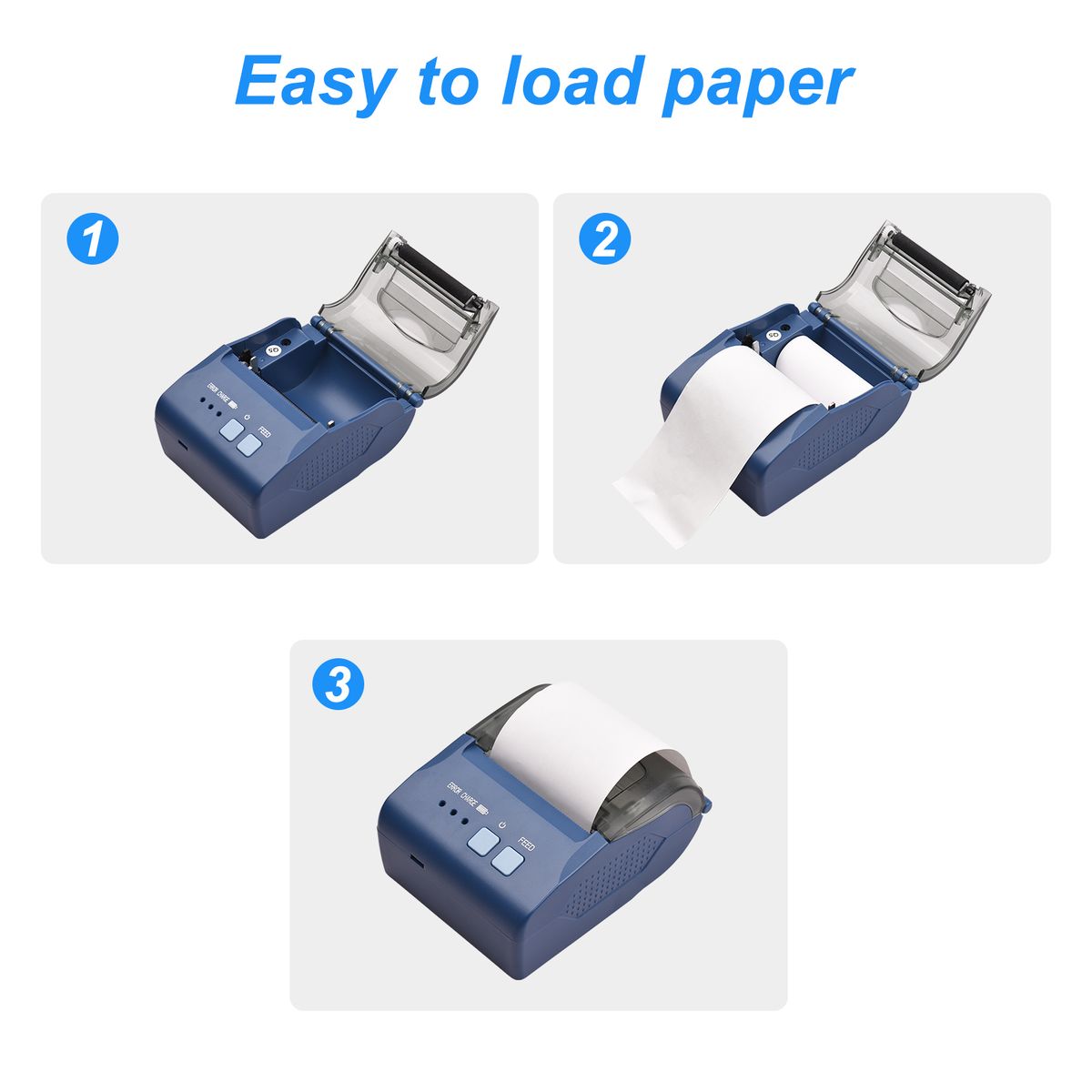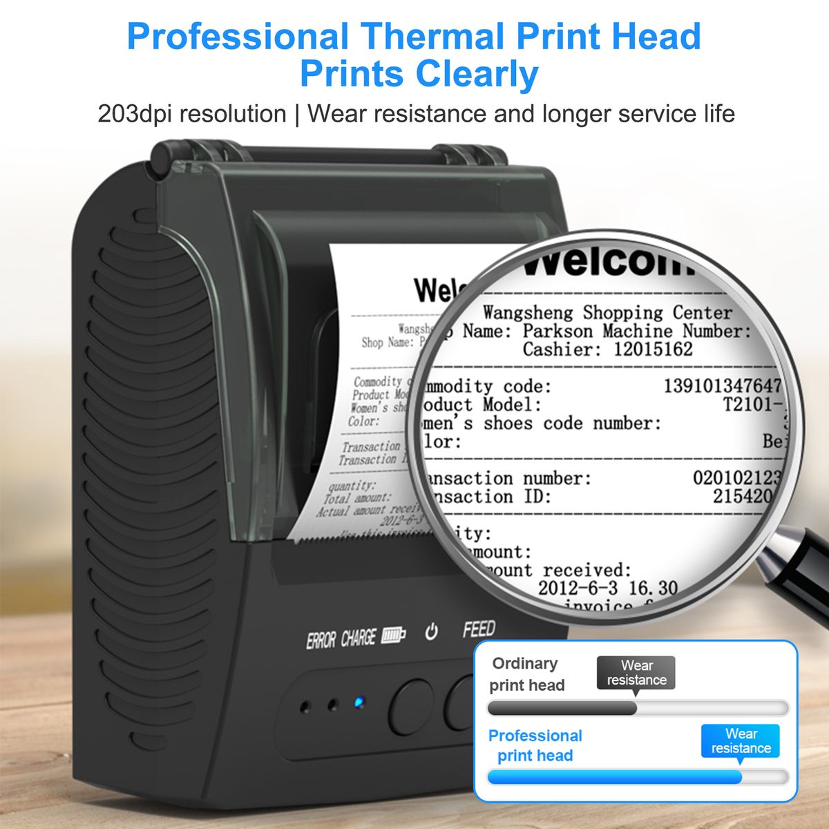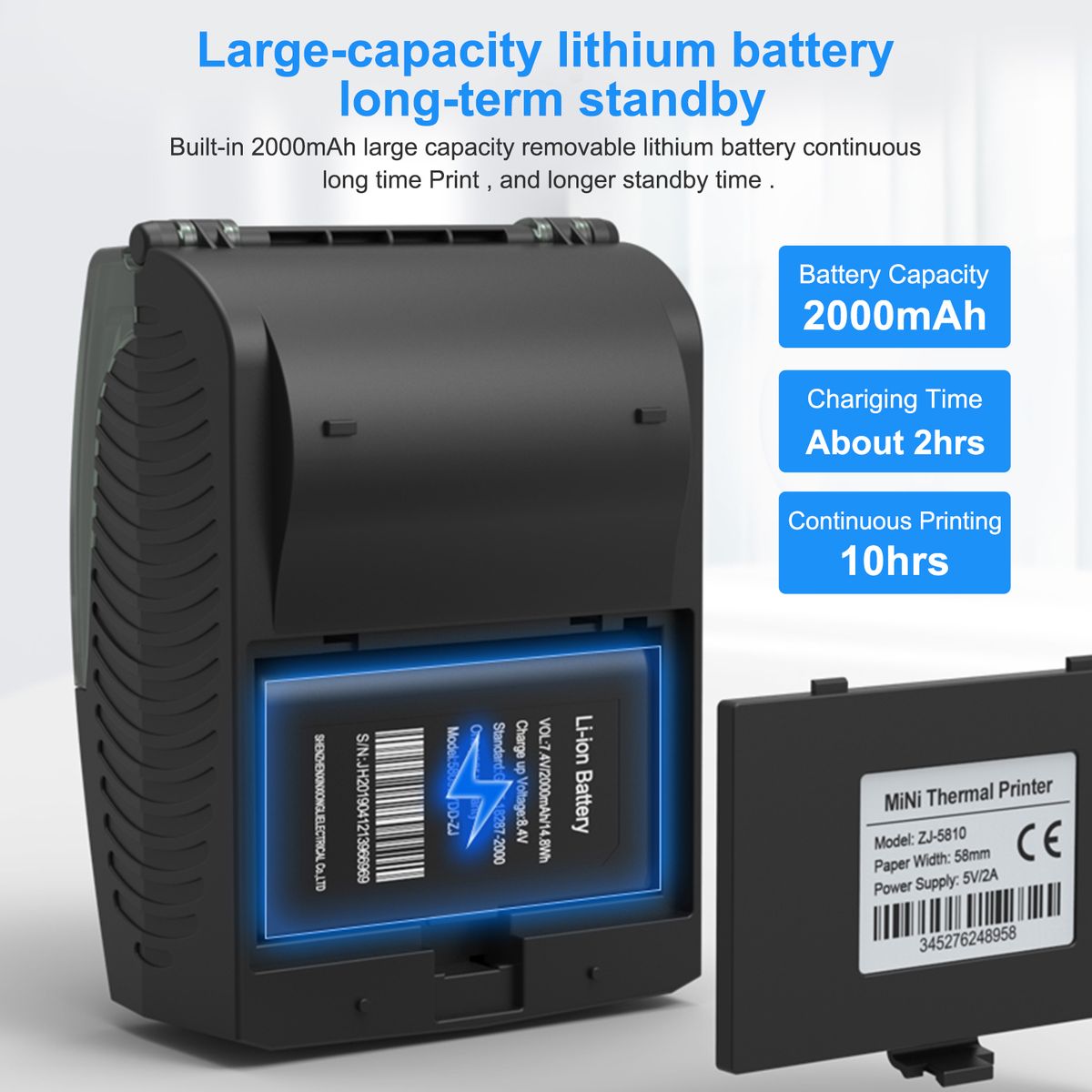 - Built-in 2000mAh large-capacity rechargeable-battery, it can print for a long time when fully charged, print receipts at any time. With USB interface, it is more convenient to load and more stable to transfer data.