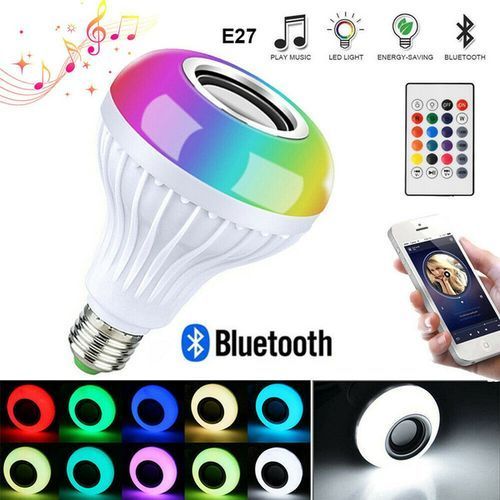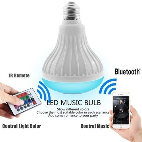This bulb is an energy saving bulb,a Bluetooth enabled, multicolored, energy efficient smart LED light which can be controlled through your smart phone and IR remote controller. It can also be control with your TV remote. 100% new and high quality. 2 in 1 smart Bluetooth speaker LED lamp, it brings you beautiful light and wireless music enjoyment at the same time. LED Lamp Appearance,Different Color Options. E27 Lamp Base, Screw In Type. Adjustable Volume Of Light And Music and comparable to a 50 watts halogen bulb. It can be fixed to your bed lampshade, 24Key Remote Controller - Change to color you want with a handy Controller. Different Lighting Mode - Flash, Strobe, Fade, Smooth, can suit with any atmosphere. Energy saving, environmental protection, low power, low heat enerating. Easy to install and operate. Suitable for the bedroom, closet, cabinet, corridor, workshop, basement, garage, stairwell, oil depots, roof, door, home decoration, Hotels, clubs, shopping malls decoration, architectural decorative lighting, boutique atmosphere lighting, meeting room, factory and other places