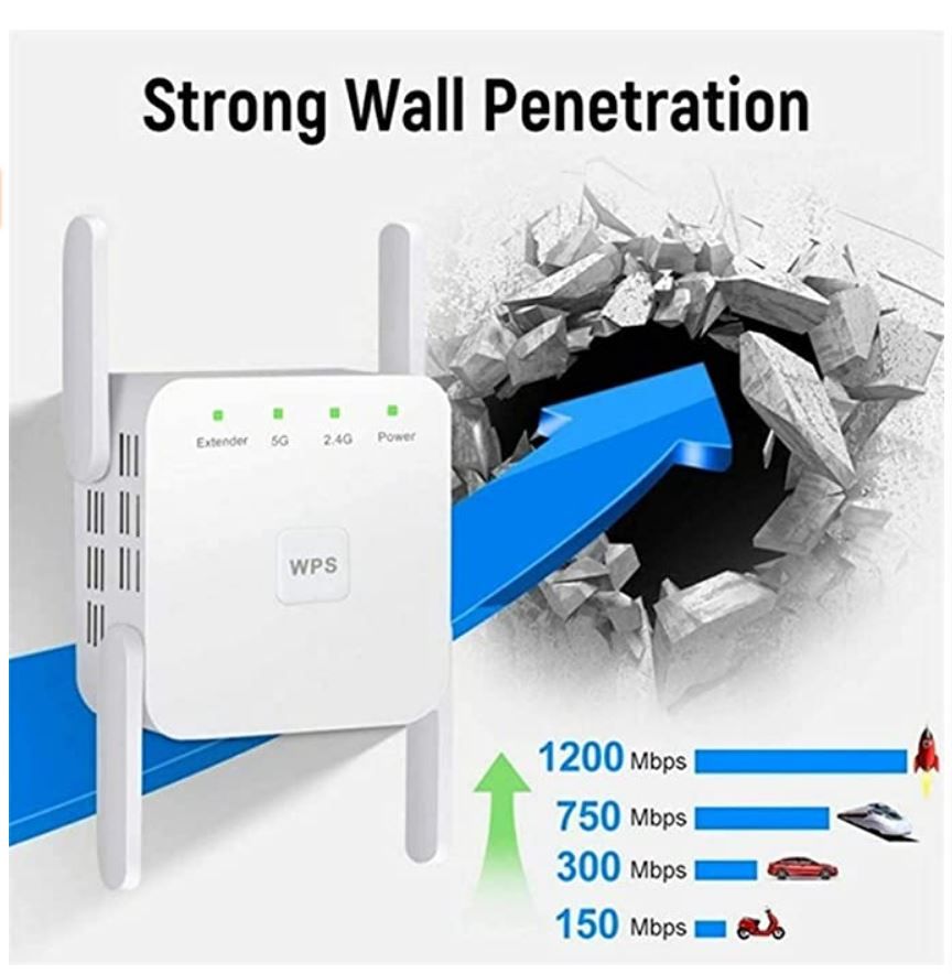 WiFi Range Extender, Repeater, Enjoy Gaming Movies,1200Mbps 2.4 & 5GHz Dual Band WPS Wireless Signal Strong Penetrability, Wide Range of Signals 2000FT