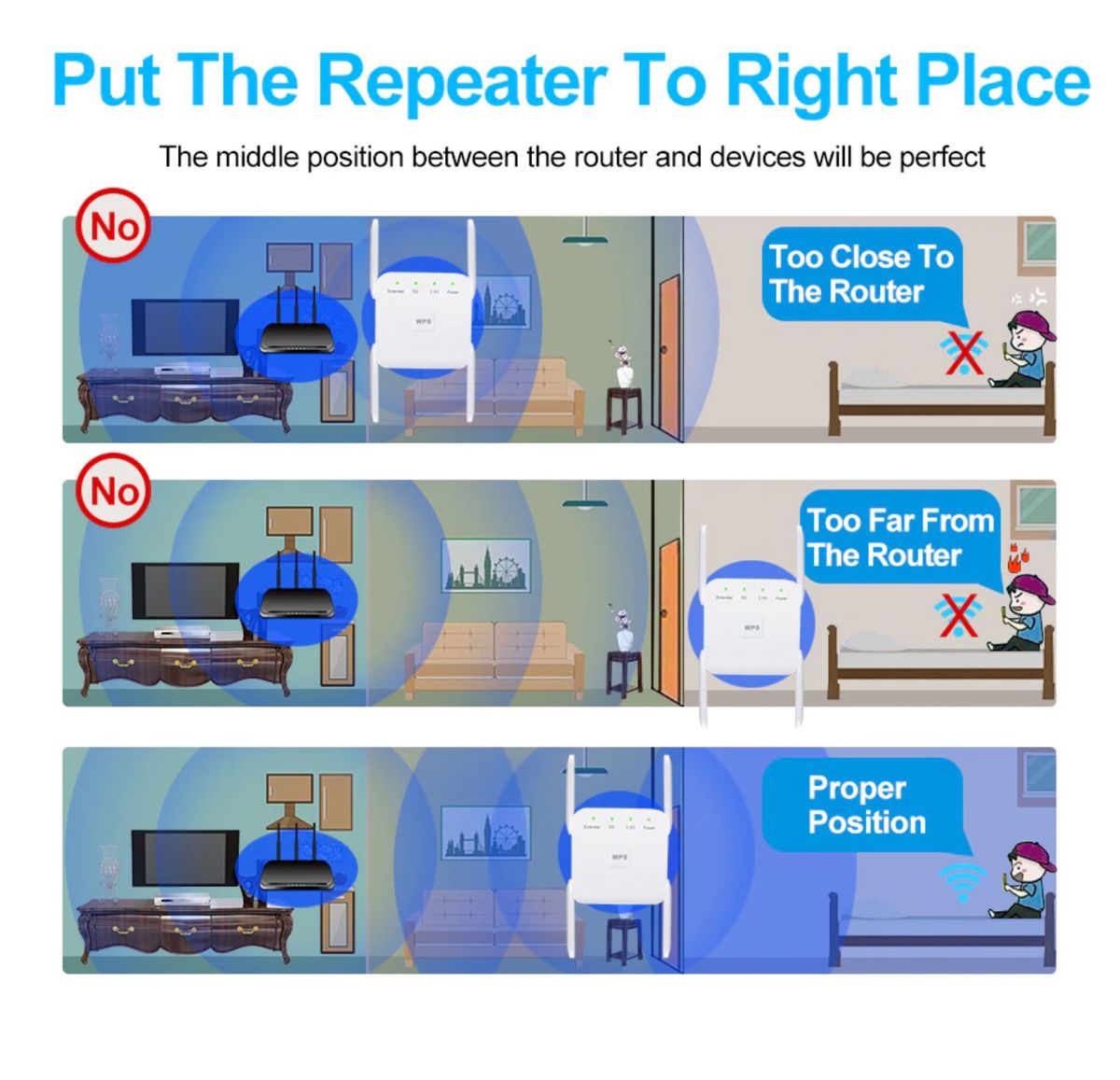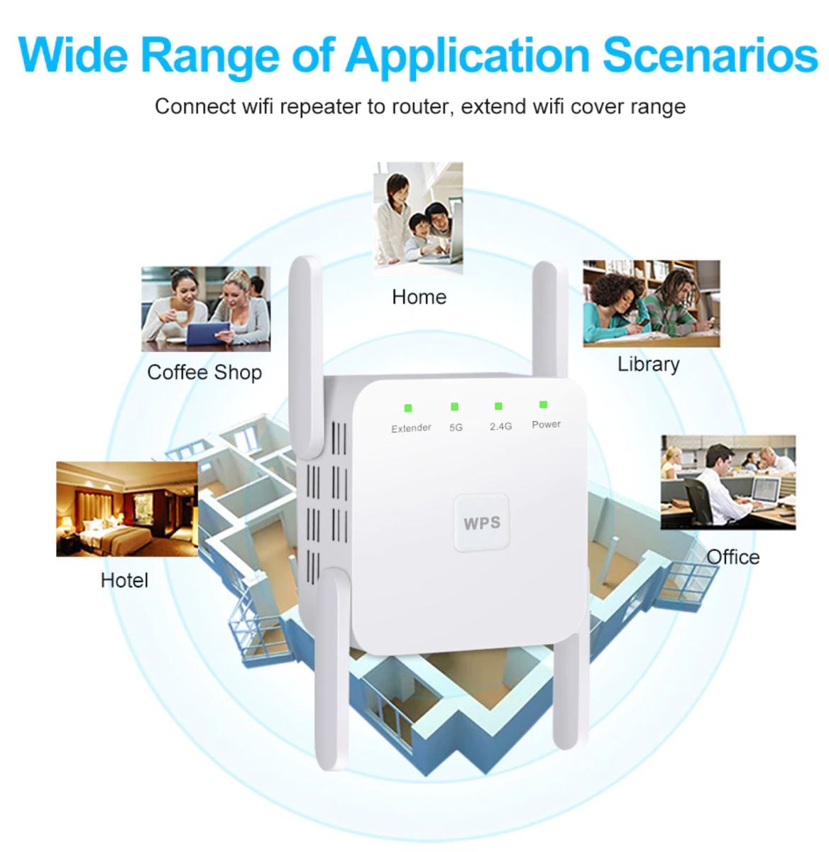 1200Mbps Stable Signal Boosts And 360° Full Coverage This 5GHz & 2.4GHz Dual Band WIFI Range Extender works with any standard Wi-Fi router and runs on dual bands at a combined speed of up to 1200Mbps. 360 degree high-speed connection for happy Surfing HD video and online game.
