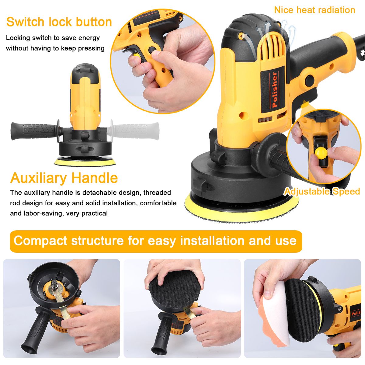 Compact Structure: This car polisher is lightweight and portable, easy to carry and easy to operate.