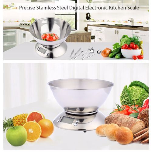 1 x 5kg 1g Stainless Digital Electronic Kitchen Food Scale with Alarm Timer Temperature Sensor (SILVER)