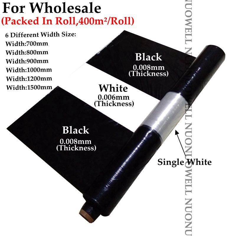 Type:+Black FilmThickne:Whilte:0.006mm,Black:0.008mmNew PE Material,No SmellGood Toughne,Good Tensile Force