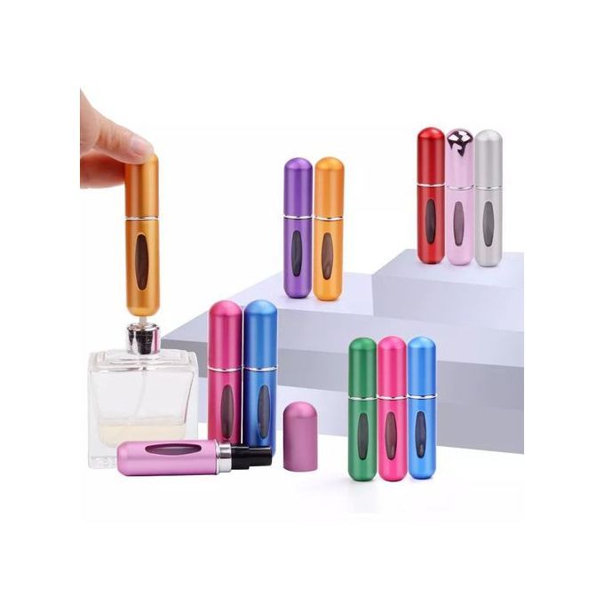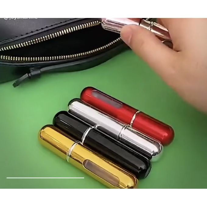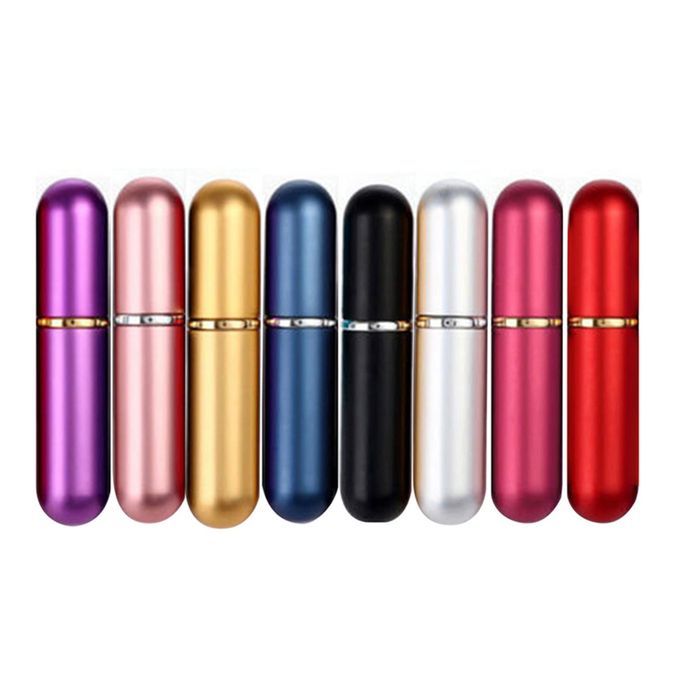 Travel spray bottle Compact and lightweight, easy to carry, ideal for pockets, wallets, totes and suitcases.EASY TO REFILL AND RE-USE: Can be refilled from the bottom in seconds with easy pump-to-fill technology.TRAVEL SIZE: 8.5cm x 1.8cm, portable 5ml capacity atomizer spray bottles are suitable for travel, business trip, skin care etc. In different assorted colors, help to organist your different fragrances and you can enjoy the fresh spray all the time.SAFE MATERIAL: It made of glass inner container and metal shell, not easy to break and leak. The transparent interior glass tube allows you to easily see the amount of remaining.MULTI-FUNCTIONAL: Our refillable travel containers are perfect for essential oils, and fragrances, facial and body mists, and various water-based liquids, essences, toners, rosewater other liquid spray mist shape water etc.