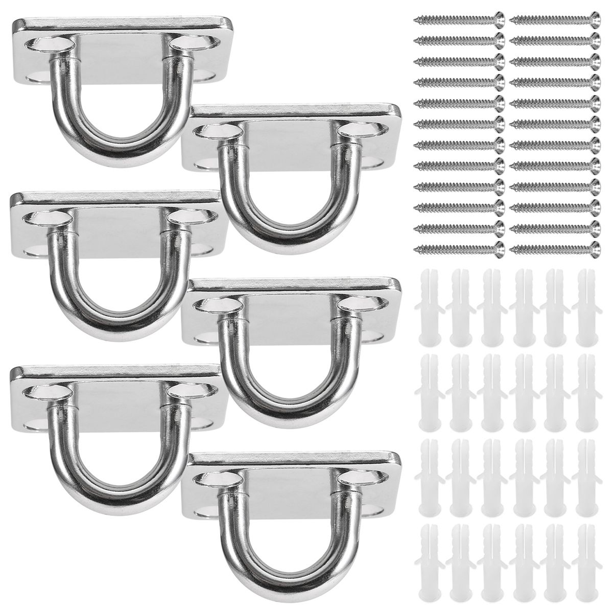 54 piece set comes with 6 eye plates,24 screws and 24 plastic plugs.
