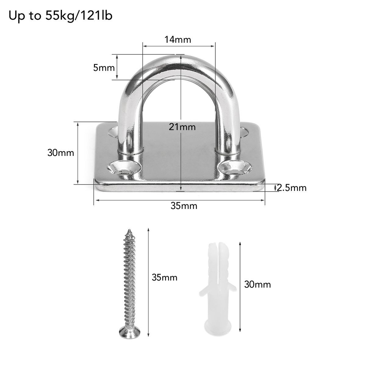 Eye Plate Bearing Capacity: Max. 55 kg / 121 lb