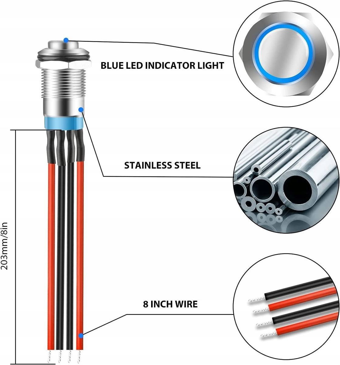 2. [RING BLUE LED LIGHT] Snap-on pushbutton switch uses induction beads to emit light. Bright and comfortable light and metal appearance make the switch very cool.LED's life span is over 40,000 hours.