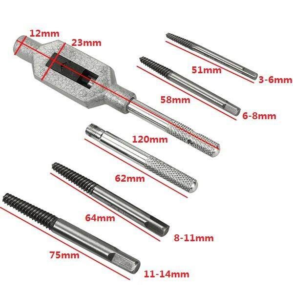 1x3-6mm Screw Extractor 1x6-8mm Screw Extractor 1x811mm Screw Extractor 1x1114mm Screw Extractor 1xW1/16-3/8 Holder