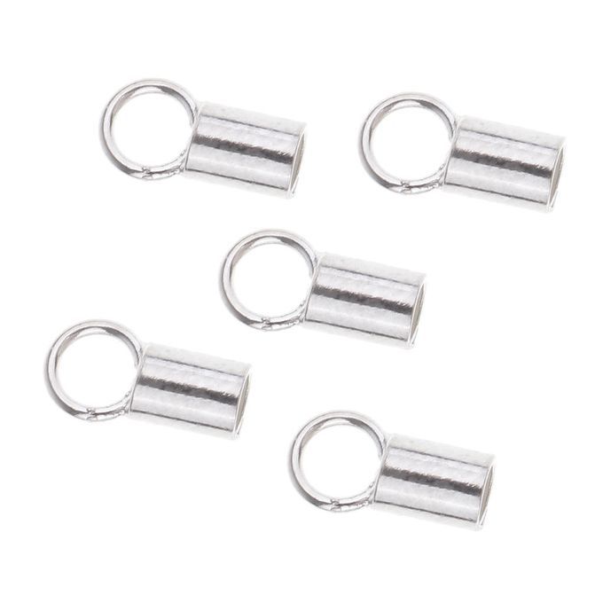 925 Sterling Silver Tube Beads Stopper Cord End Cap with Ring