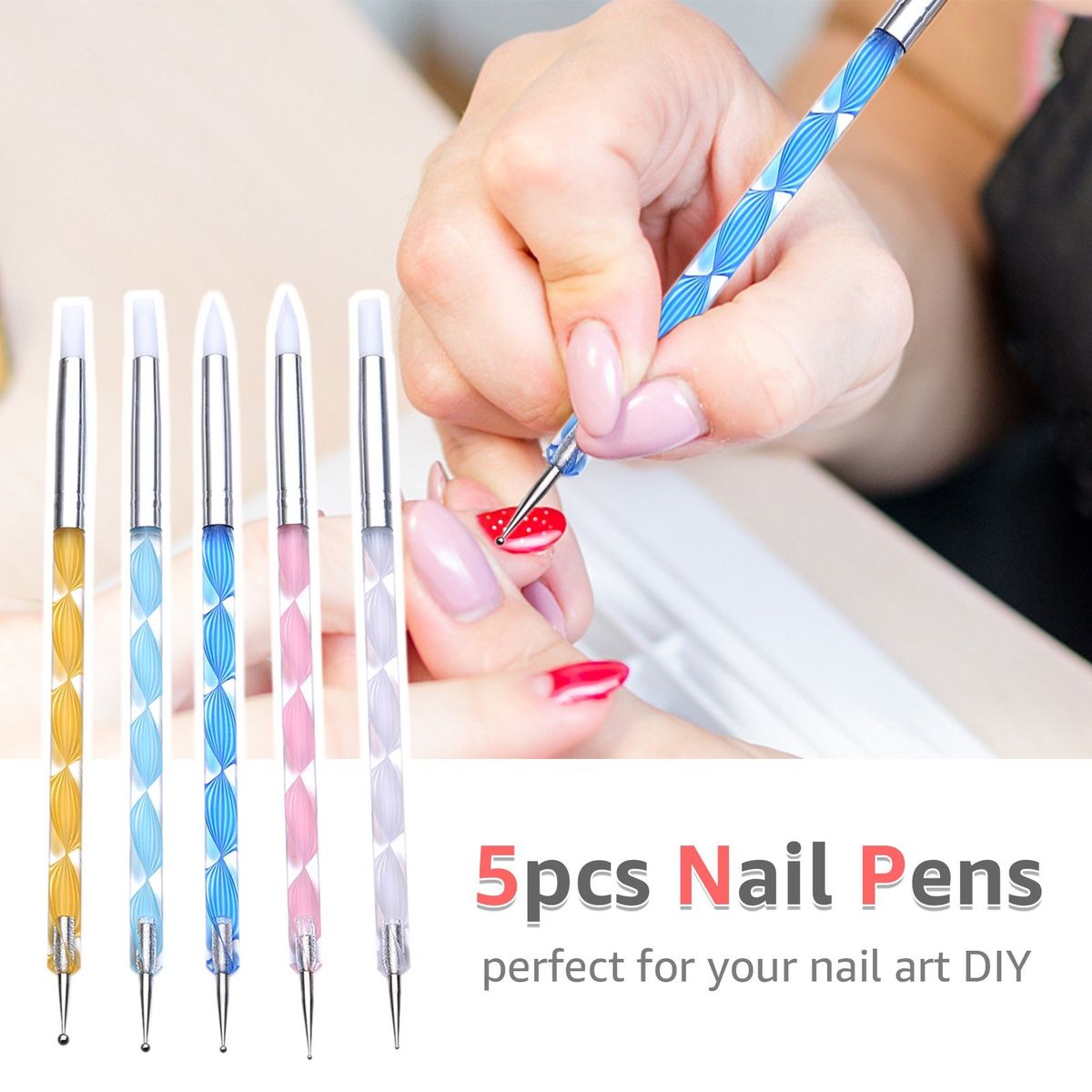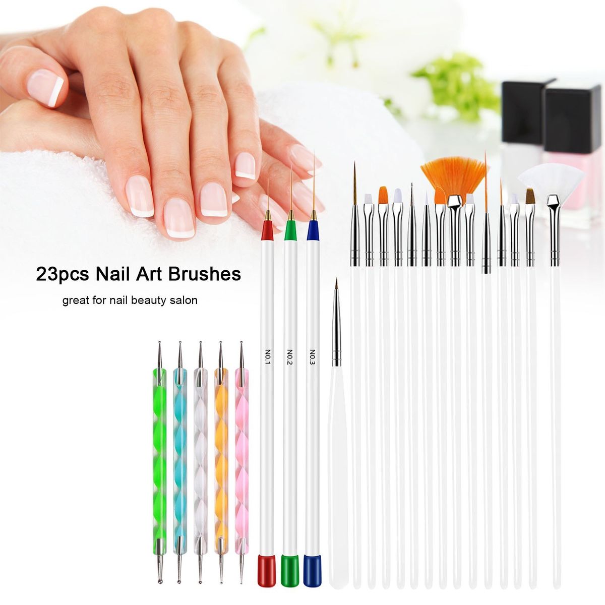 Double-ended nail brushes for applying nail-polish, painting 3D nail patterns, designing beautiful patterns and so on. Why not have a look?