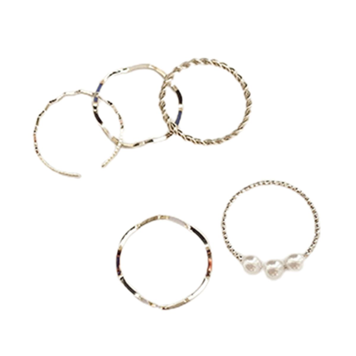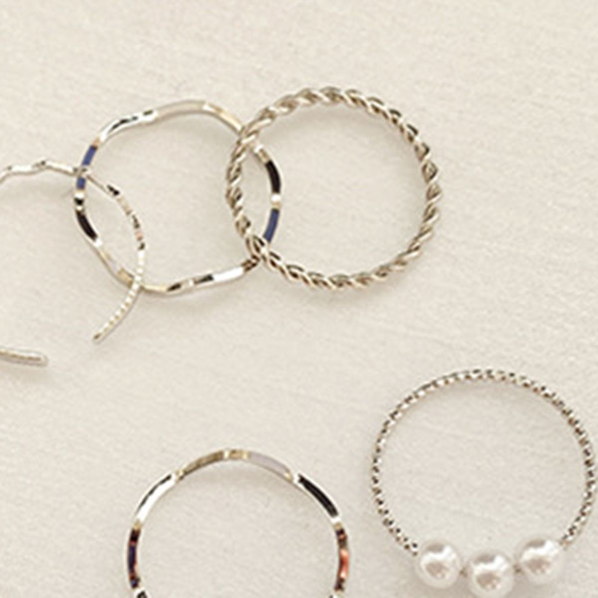 In a faux pearl and wavy design, this ring set stands out as a creative, cute and popular addition to your outfit.
