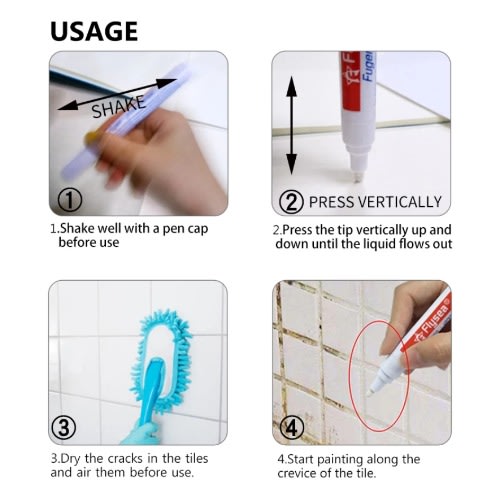 The acrylic tip is durable and easy to operate. It is waterproof and moisture-proof with strong coverage. The colors are rich and and they will not fade. Package Include: 5 x Tile gaps refill Pens with replacement nib tips.