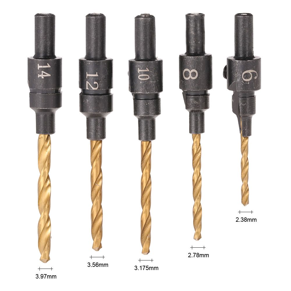 This 5pcs countersinks are suitable for drilling less than 25HRC hardness workpieces, such as carbon steel, sheet iron, insulation board, PVC board, wood, etc.