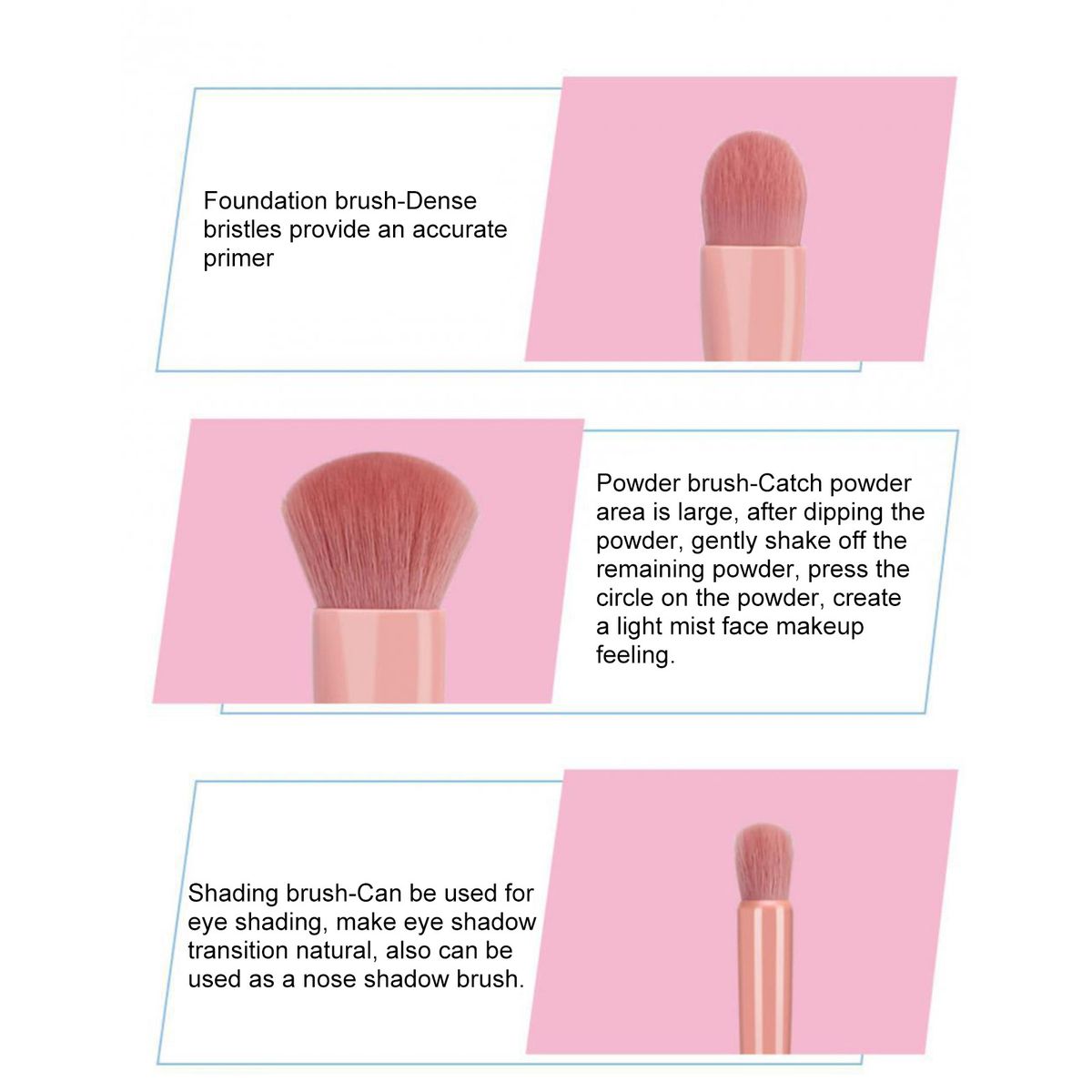 Included Foundation brush/Powder brush/Shading brush/Eyeshadow brush/Lip brush, multi-sized brushes that meet your diverse makeup needs.