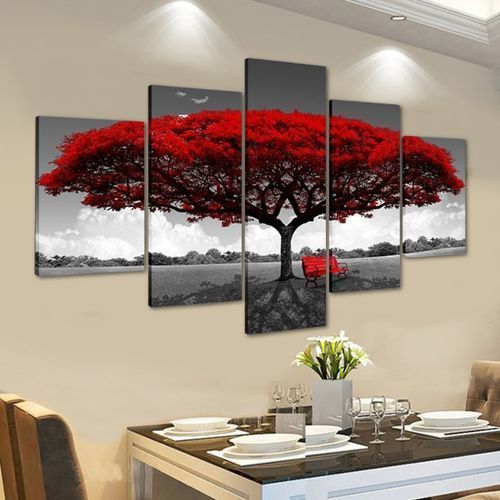 Buy 5pcs Modern Red Tree Canvas Painting Wall Art Home Picture in Nigeria