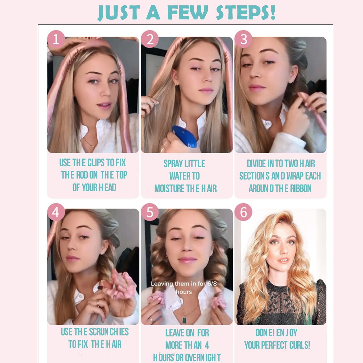 SIMPLE STEPS. Comes with scrunchies and clips to helps fix your hair in place. Wrap-up the rods around your hair and leave on for over 4h or overnight. You can enjoy perfect curls!