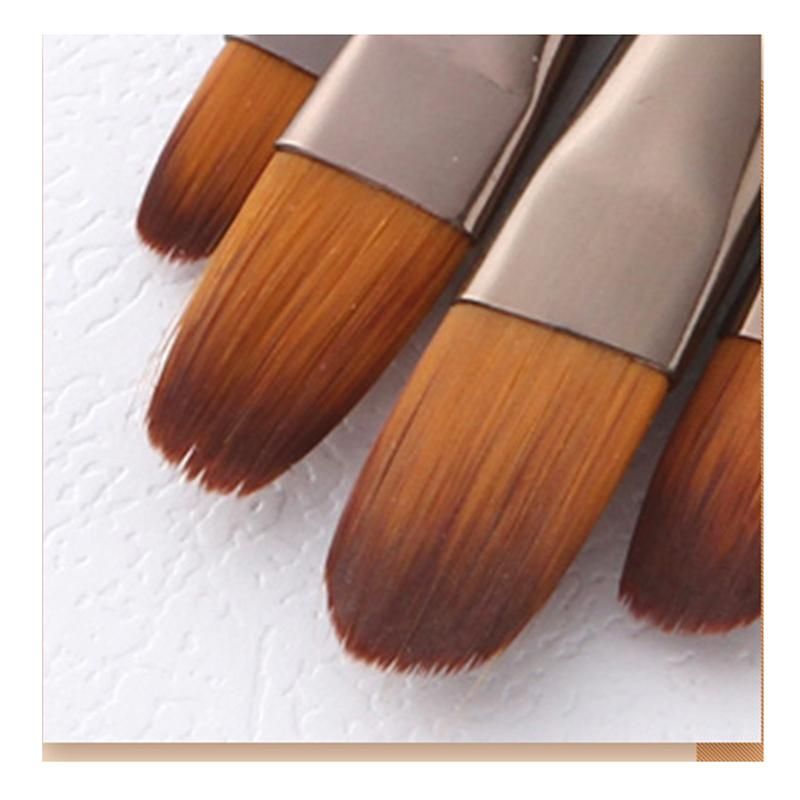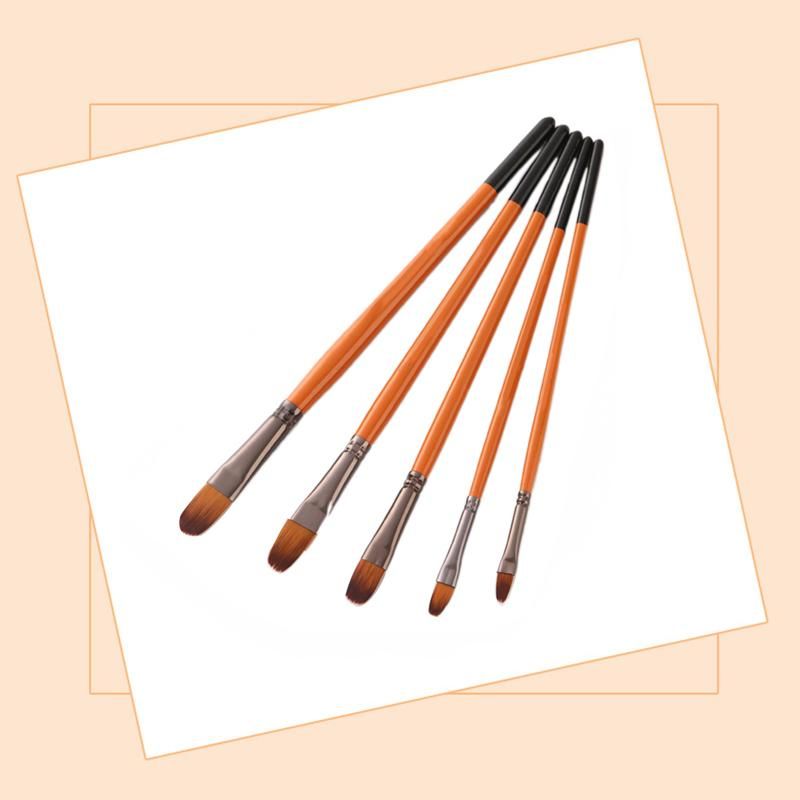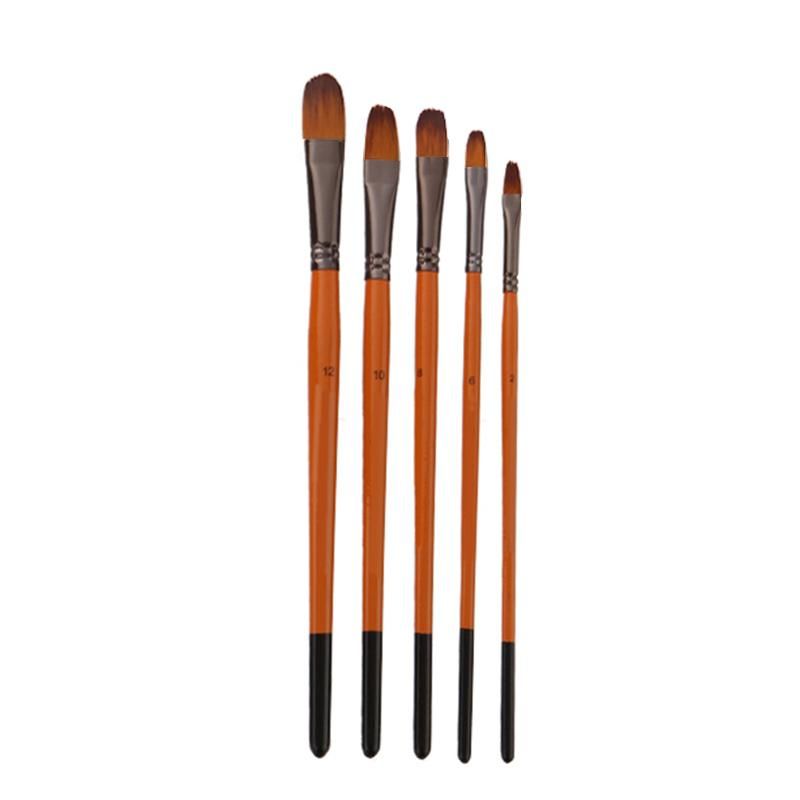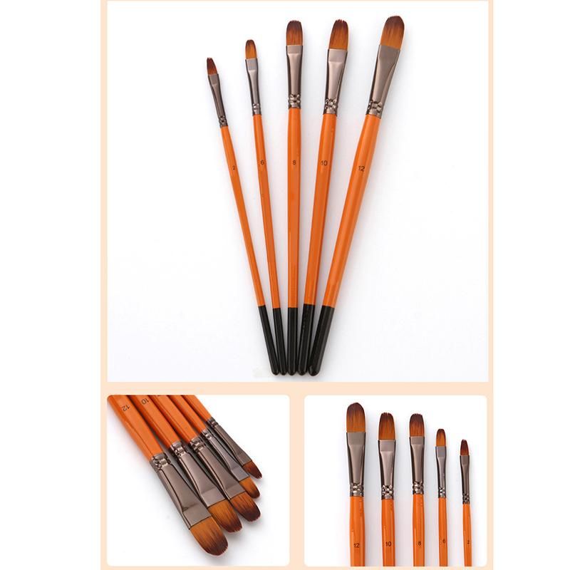 5Pcs Orange Red Nylon Hair Wooden Handle Watercolorstyle: flat peak, peak, inclined peak, tongue peak