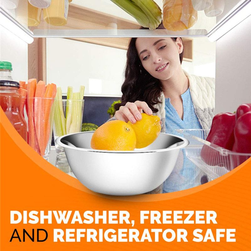 With the nested storage designed, the mixing bowl can be seamlessly nested together and thus offers space-efficient storage to help better organize your kitchen cupboard.