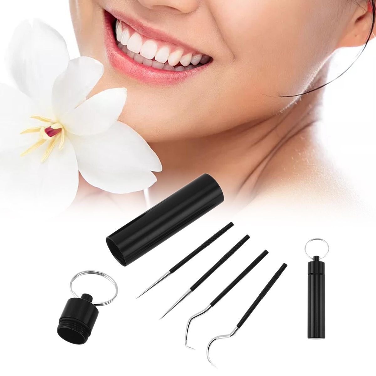 Portable Toothpicks;Stainless Steel Toothpicks Flossing;Metal Toothpickl Pendant Portable ;Pocket Reusable Cleaning Holder Outdoor;Picnic Camping Oral Cleaner Tools; Travel Toothpick Set Non Slip Small