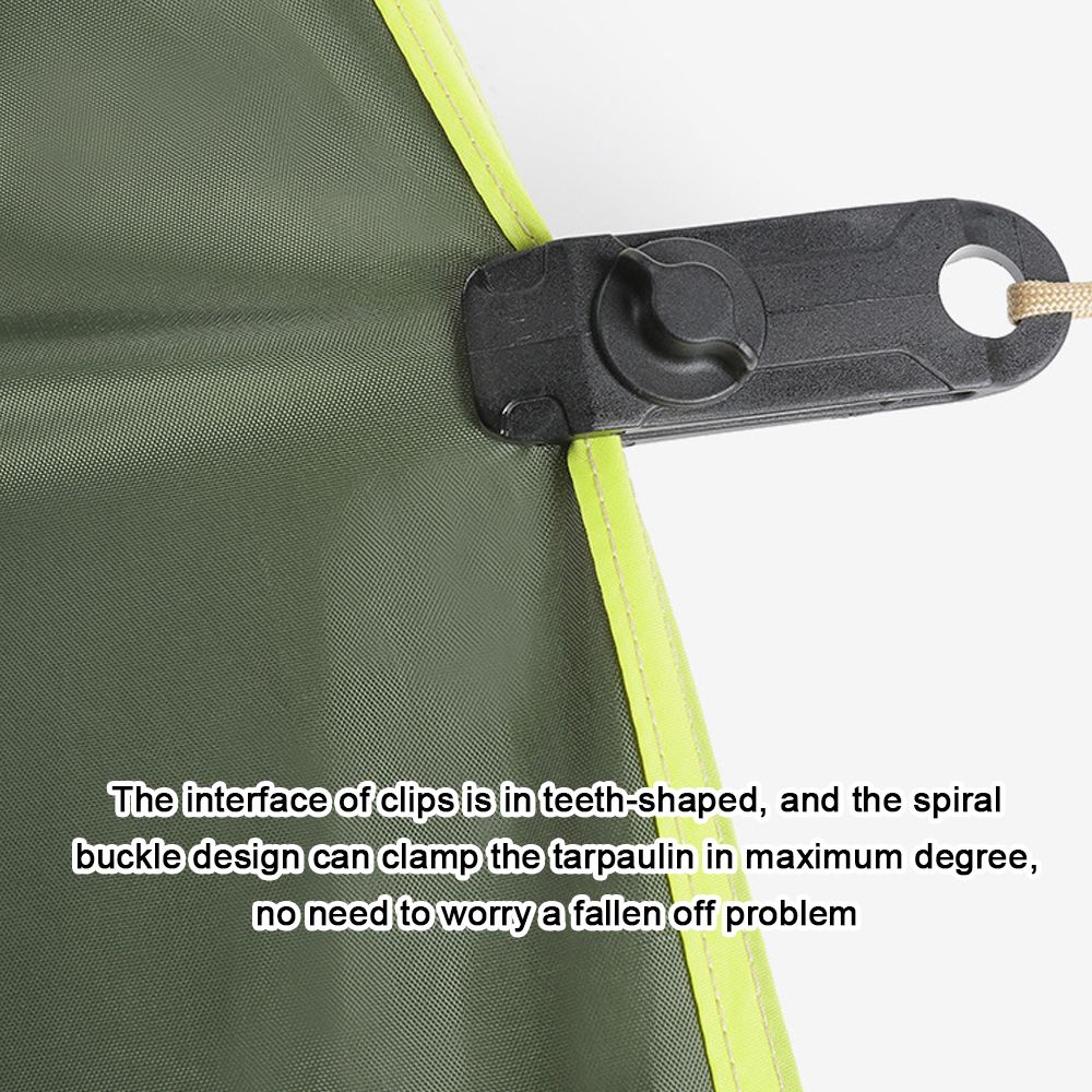 The interface of clips is in tooth-shaped, and the spiral buckle design can clamp the tarpaulin in maximum degree, no need to worry a fallen off problem.