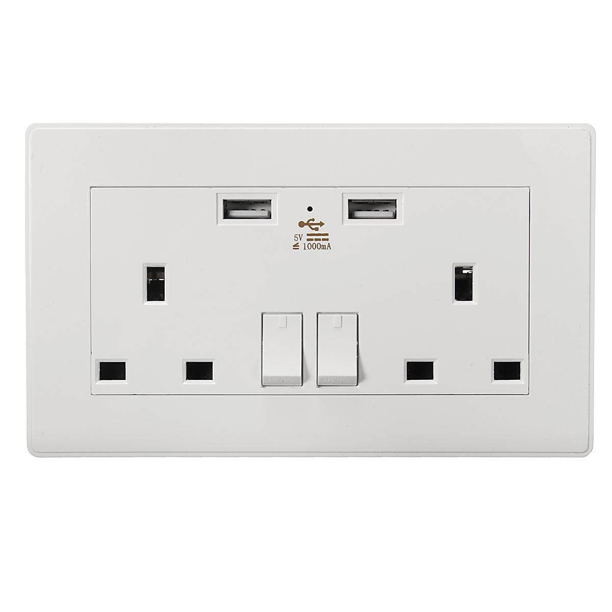 1. Double Socket USB 13A Electric Wall Plug Sockets Faceplate With 2 USB Outlets