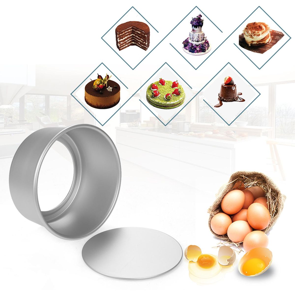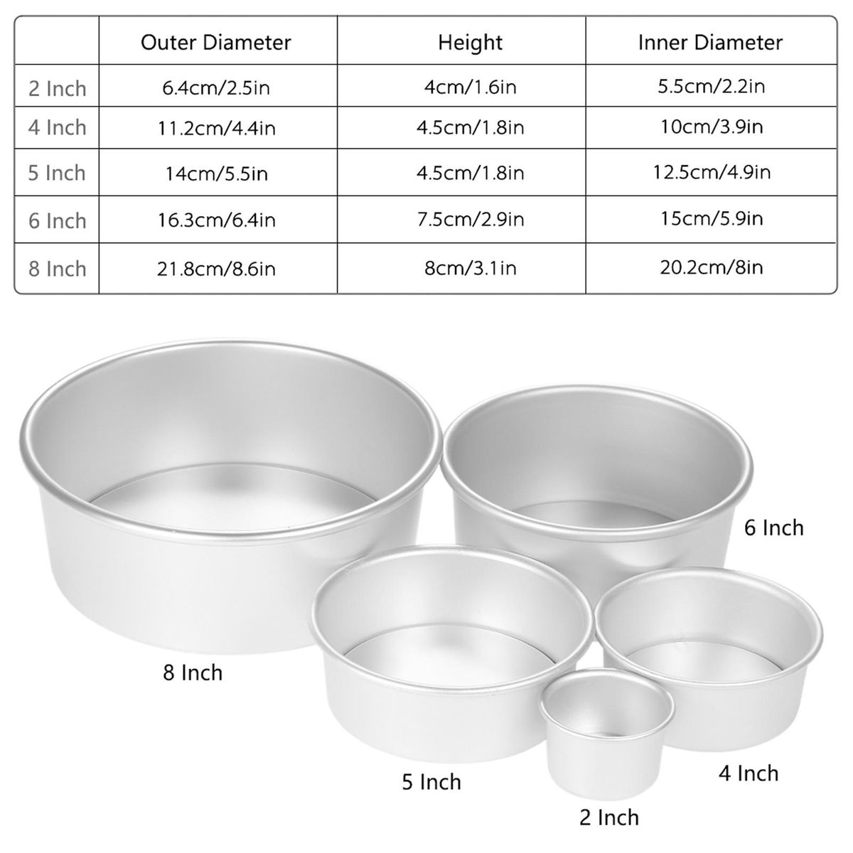 Buy 5pcs/set Aluminum Alloy Round Cake Mould Chiffon Cake Baking Pan Pudding Cheesecake Mold Set with Removable Bottom in Nigeria