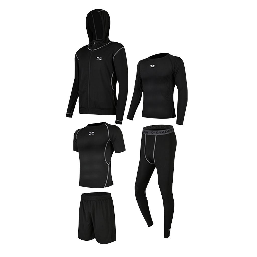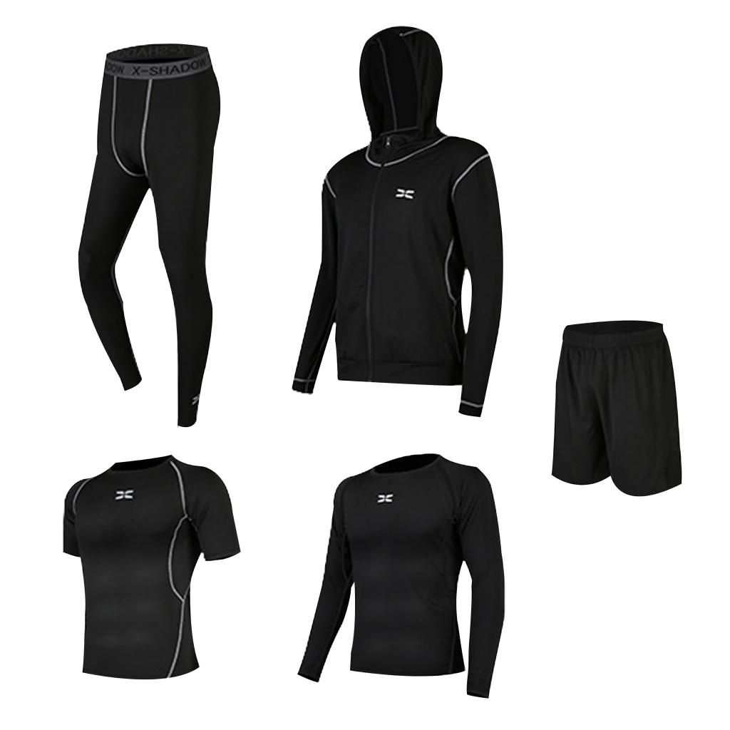 5 in1 design, includes: short sleeve shirt, long sleeve shirt, short pants, long tight pants, zipper jacket.Breathable sports fabric, quick drying, high elasticity makes it fits for most men.Absorb sweat quickly, and wear comfortable with stylish fashion look.Suitable for all sports activities at home, gym or any other occasions you want.Perfect gift set for your husband, son, boyfriend, dad and yourself.