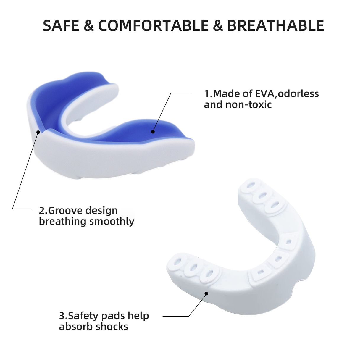 *【Good Quality Eco Friendly Material】- Kids Youth Mouthguard made of EVA, odorle and non-toxic, good elasticity and tension, good shock-proof and buffer performance. We recommend replacing it every 3 months, please disinfect before and ar use.