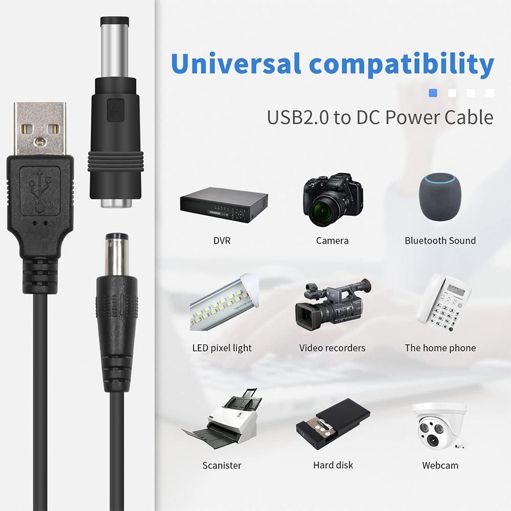 USB to DC Cable is widely used in smartphones, IP cameras, security devices, LED lights, routers, mobile power, toys, Bluetooth speakers, digital audio-visual devices, mini fans, small appliances and most electronic 5V devices.