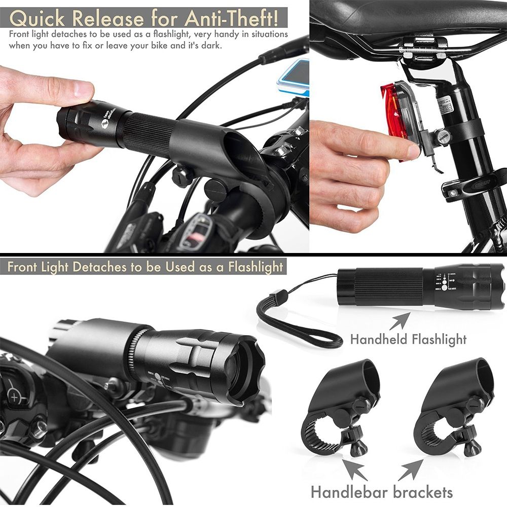 5W Mountain Bike Headlight Zoom Glare Waterproof Flashlight Set Car Headlight + Taillight (Set One)