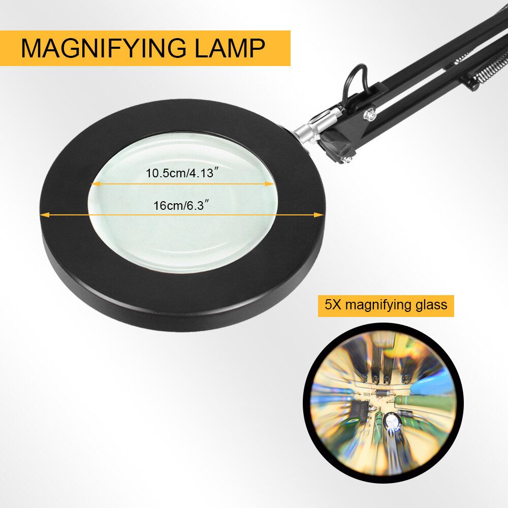 Two Mounting Options: The lamp comes with a choice of a circular or heavy-duty clamp base, providing flexibility and practicality for different usage scenarios. It is an ideal lighting and magnifying tool.