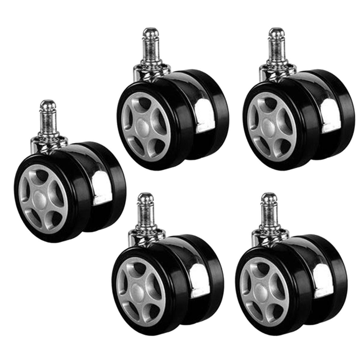 【Product Size】: Diameter 6cm/2.36inch. Replacement chair casters fit most standard 2 inches 5 wheel chairs.【Durable Material】: The office chair wheels are made of high quality polyurethane material, wear resistant, strong bearing capacity, sturdy and durable to use.【High Performance】: Mute and 360° rotating desk chair wheels, provide smooth and quiet sliding without disturbing others.【Wide Application】: Universal chair casters fit most computer desk chairs, gaming chairs, etc. Perfect for home and office. Easy to install.【Fit Most Floors】: The computer desk chair wheels are suitable for hardwood floors, laminate floors, tile floors and carpet floors, etc., will not cause scratches or noise.