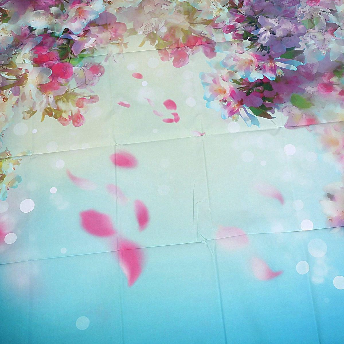 5x7FT Blue Theme Peach Blossom Petals VinylThe material is vinyl (soft, thin, lightweight, hard tear). Computer-printed for realism.