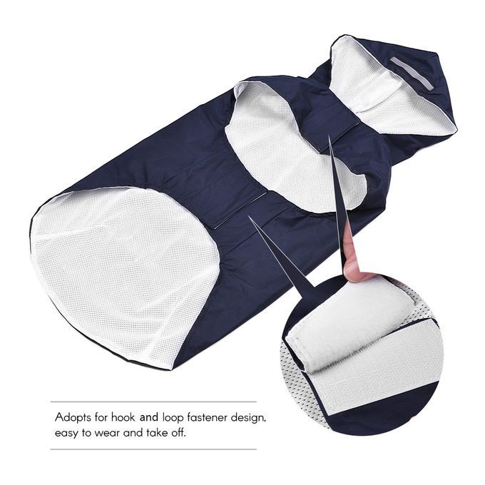 5XL rain coat for dogs, 70cm/27.56in length, 92cm/36.22in chest girth, 59cm/23.23in neck girth.