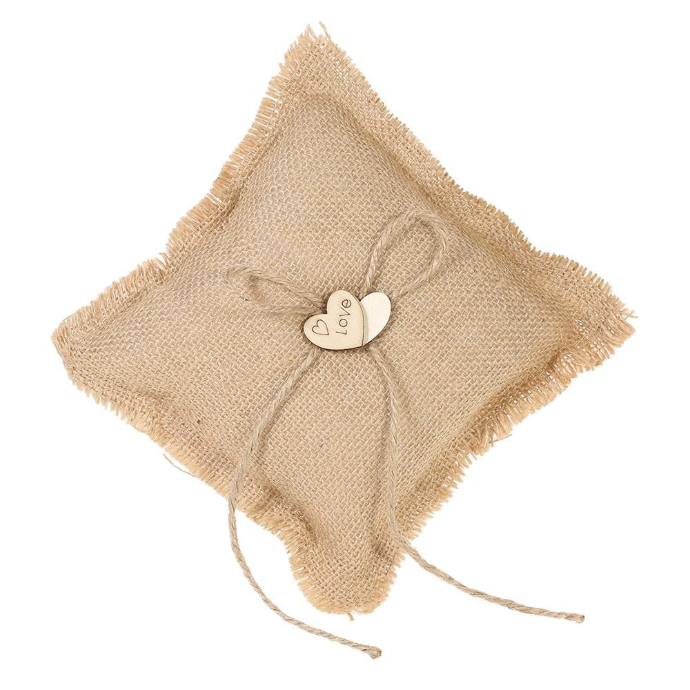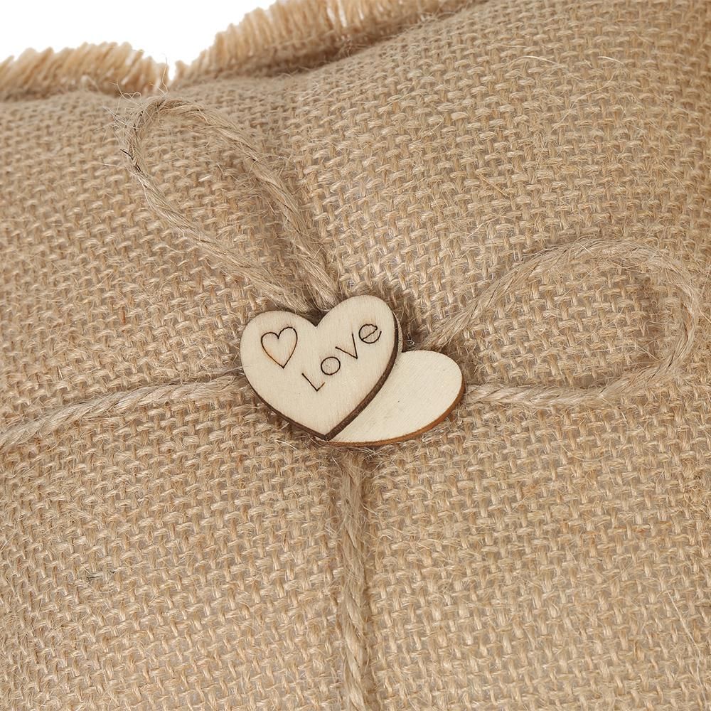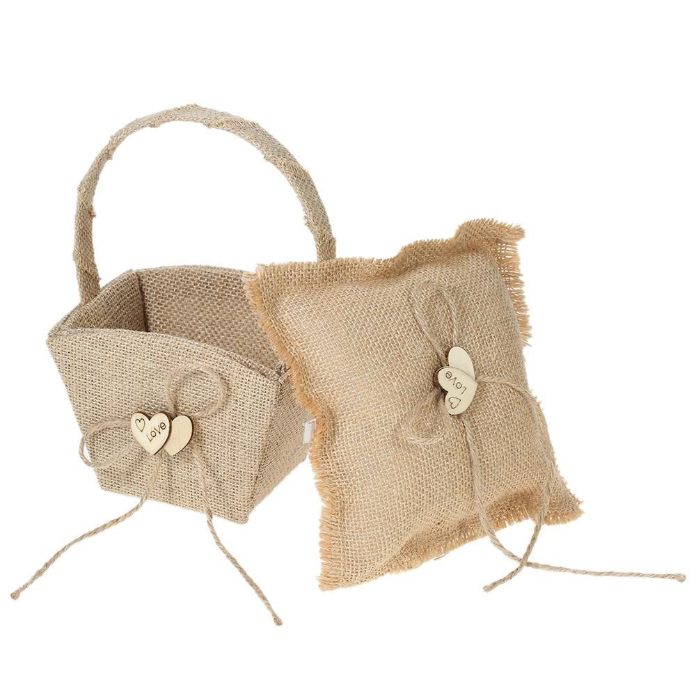 Buy 6 * 6 inches Vintage Burlap Double Heart Ring Bearer Pillow and Rustic Wedding Flower Girl Basket Set in Nigeria