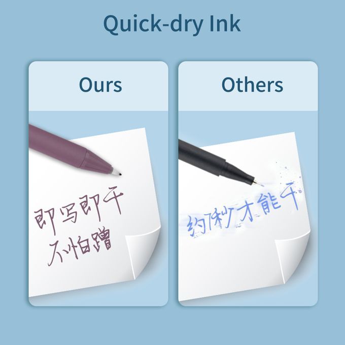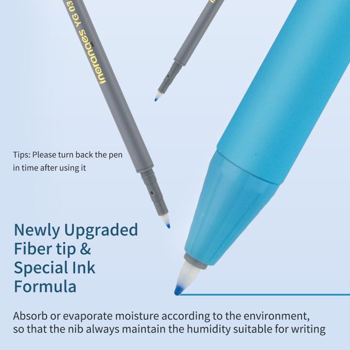 Adopt newly upgraded fiber tip and special ink formula can absorb or evaporate moisture according to the changing environment, so that the pen tip can always keep the humidity suitable for writing, so that the ink will not dry even without the pen cap!