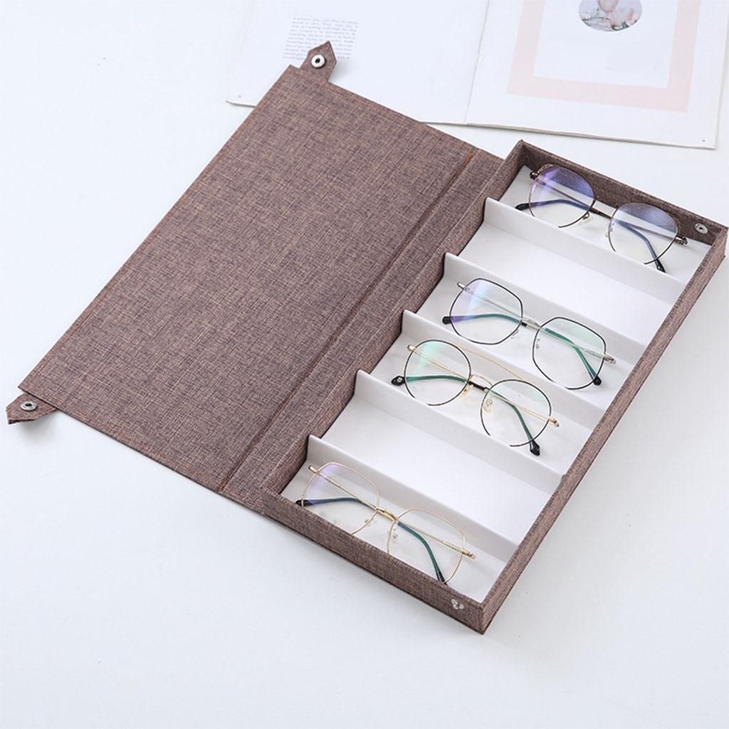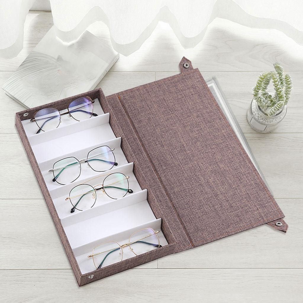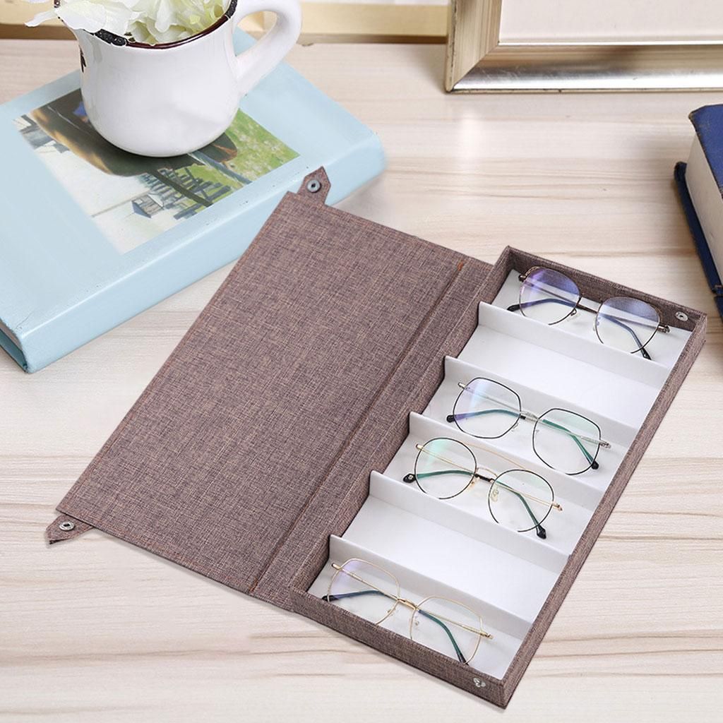 The material is linen on the outside and high quality flannel on the inside.Can also be used to store jewelry, craft supplies, watches, and other items.6 separate compartments to keep your sunglasses and glasses organized, provide enough storage space for different glasses, making them free from clutter status.The perfect combination of functionality and elegance, this organizer is made to impress.Perfect for home and business use, and a wonderful gift.