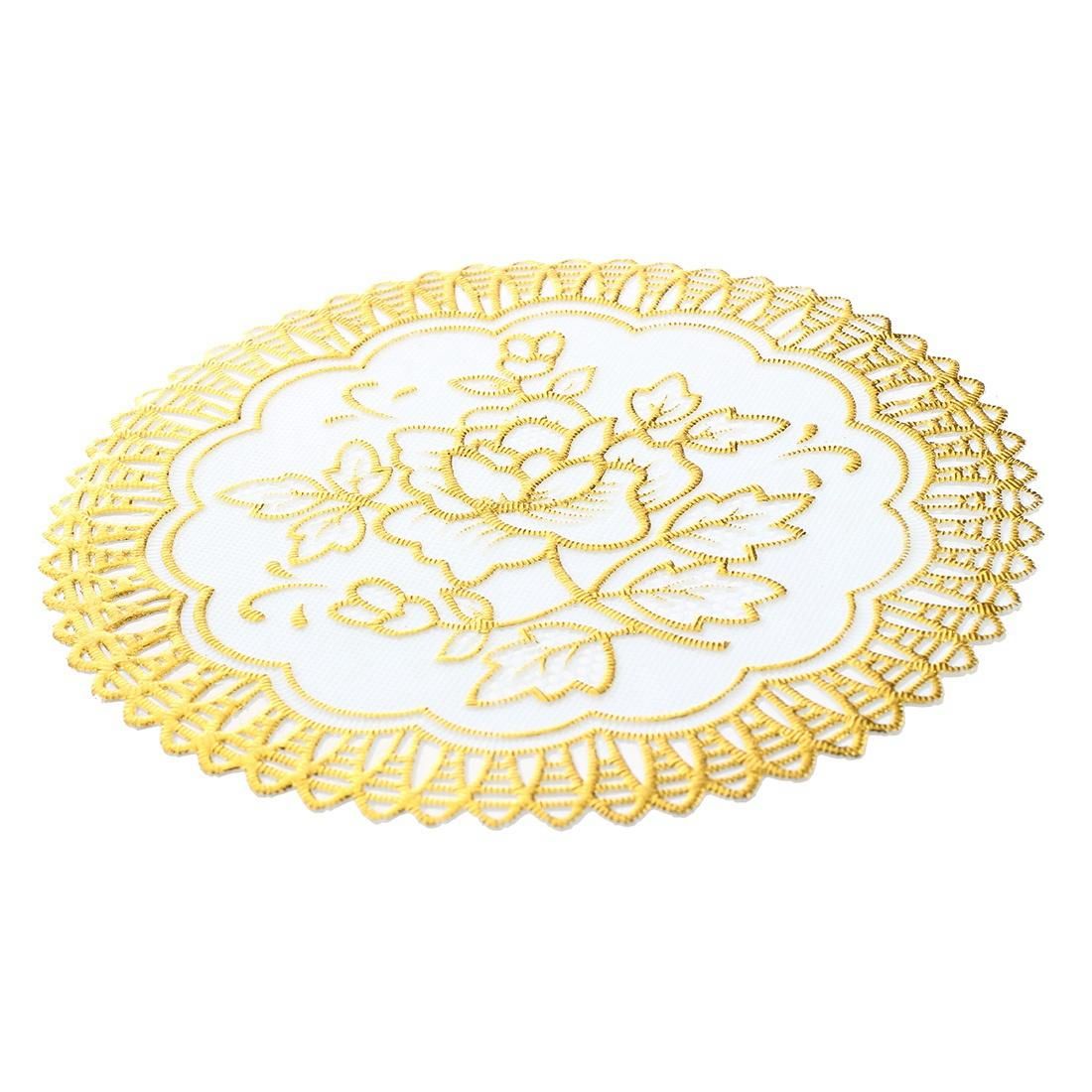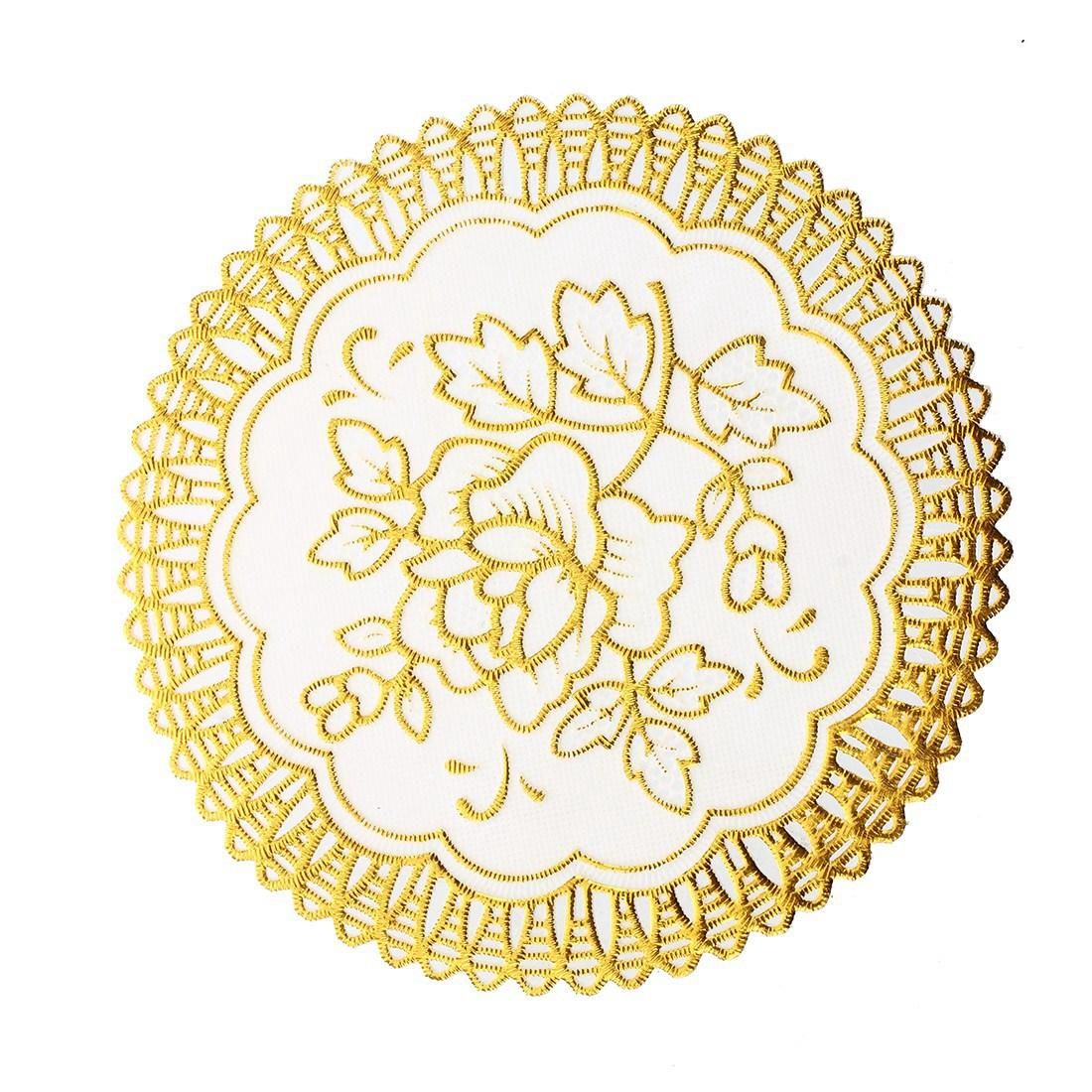Golden flower pattern of this Table Cup Mat is suit for use in a or party.