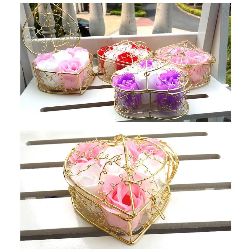 6 Flowers/Box Valentines Day Gift for Wedding Gifts[Easy To Use]It's an perfect desktop decor.Lightweight,portable,you can put it wherever you want.There is a special handle on the metal basket,you can hang it to any place as well.