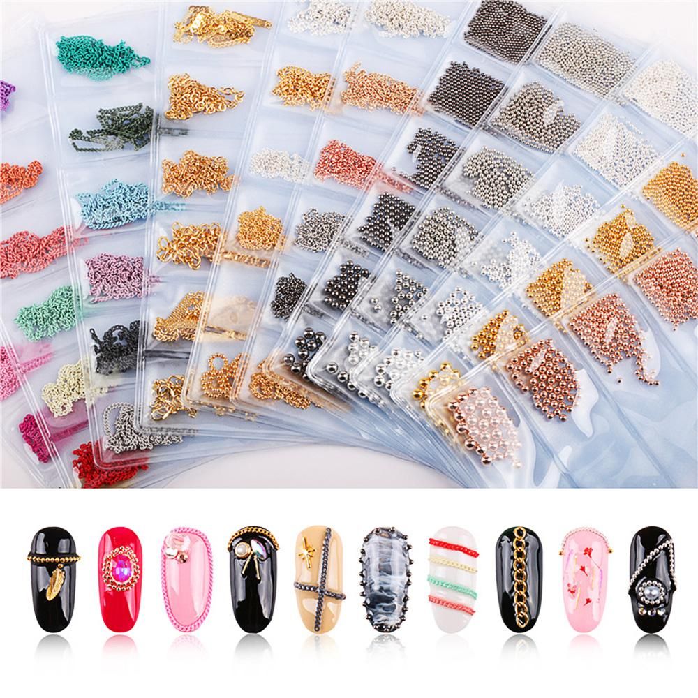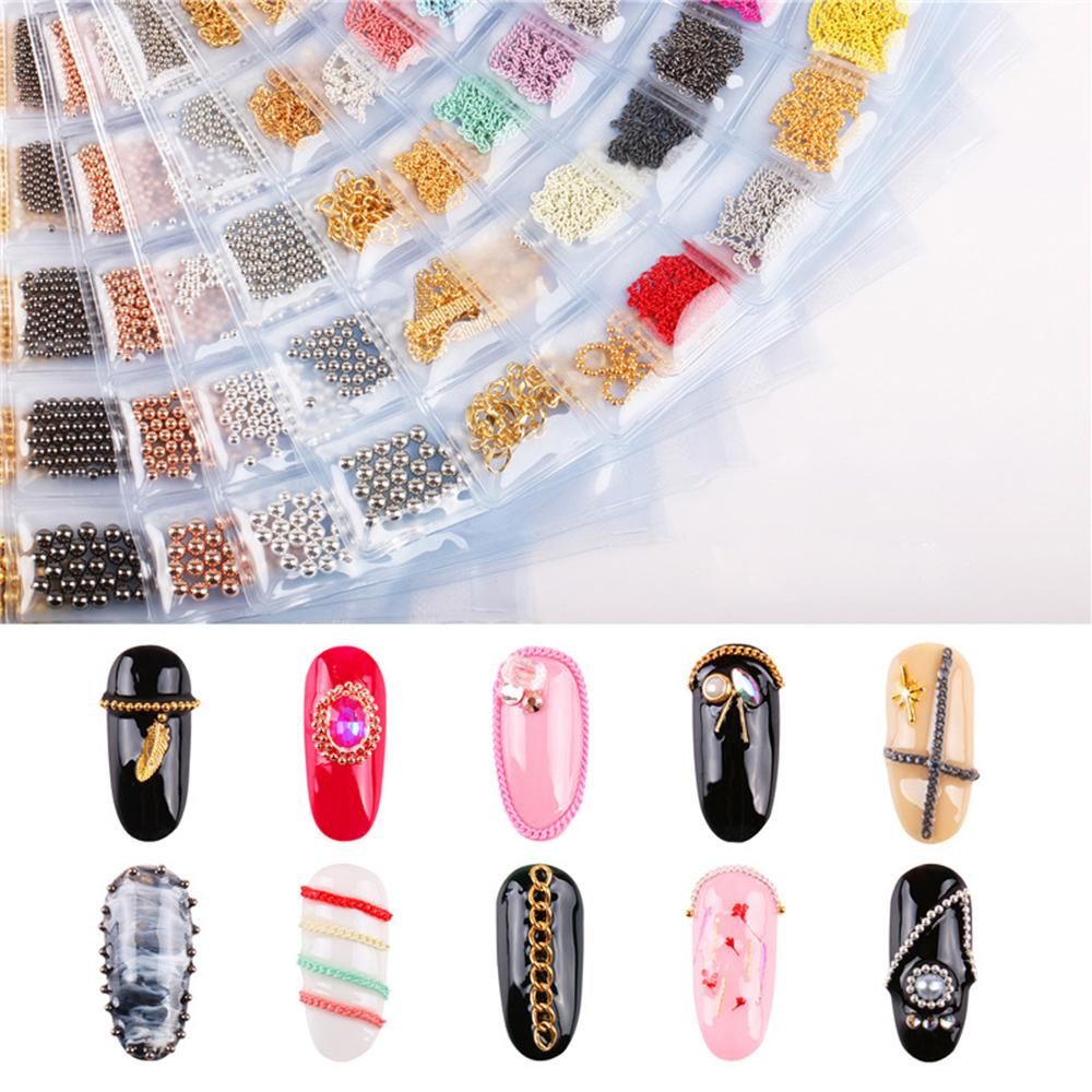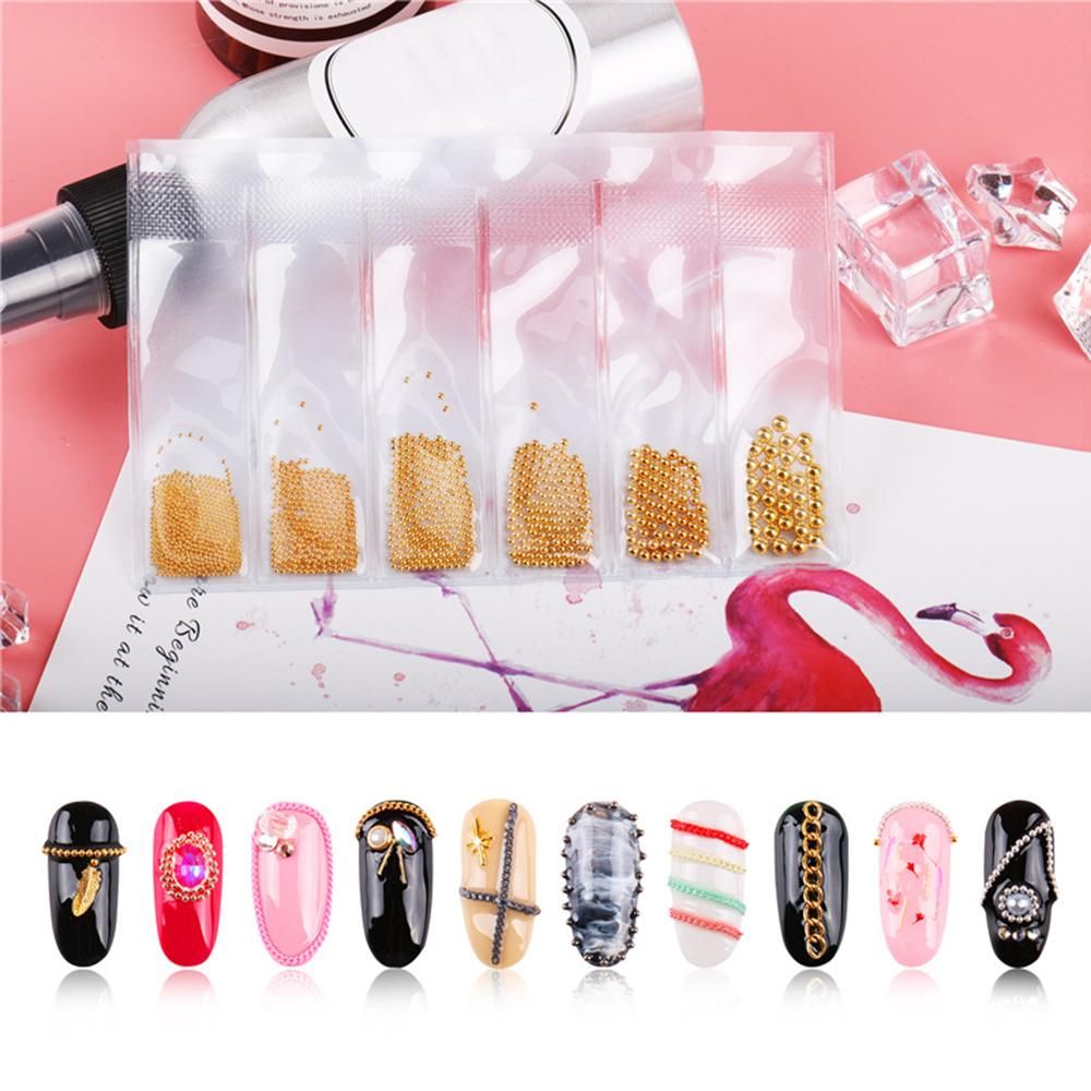 Buy 6 Grid/Bag 3D Metal Nail Art Decoration Gold Metal Chain Beads Line Multi-size DIY Manicure Nail Jewelry Decoration in Nigeria
